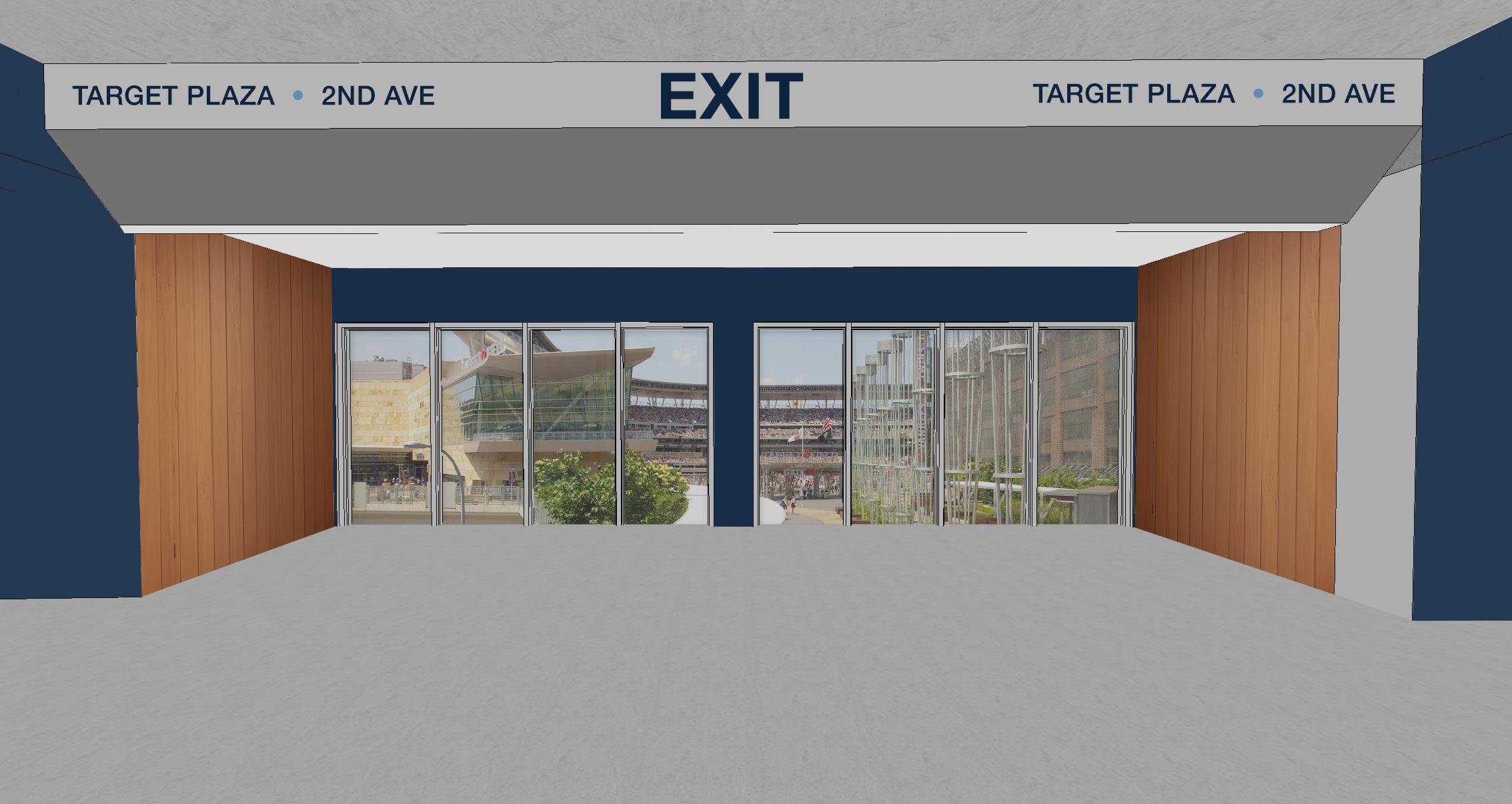 Exit doors communicate its location specific destination to fan or guest