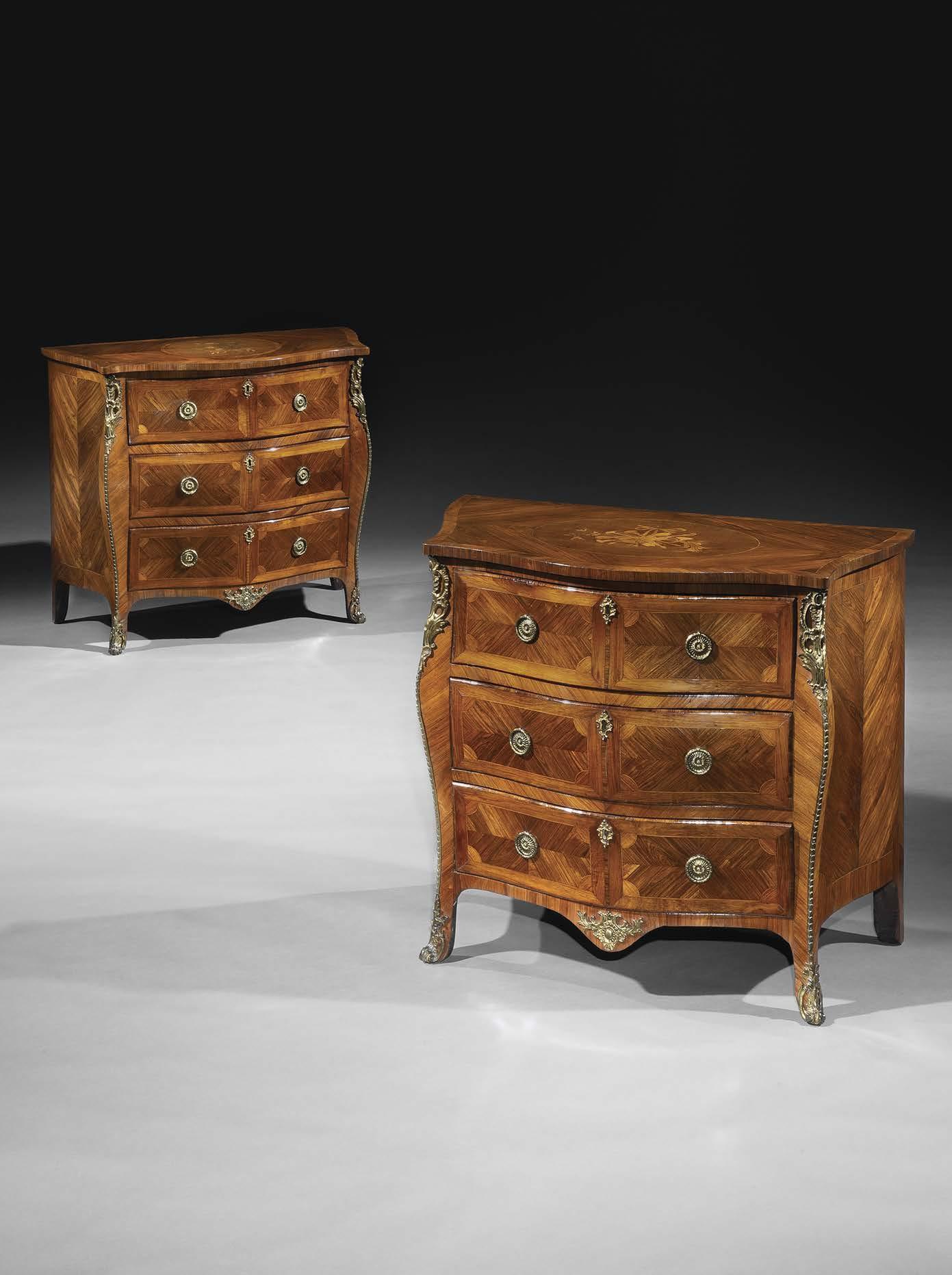 This exceptional bachelor’s chest is extraordinarily rare. Another example with red japanned decoration was part of the magnificent collections of the Marquess of Cholmondeley from Houghton Hall, Norfolk (sold Christie’s, 8 December 1994, lot 114) and had previously been in the collection of Sir Philip Sassoon, Bt., Trent Park, Hertfordshire. Documented in a photograph of the Blue Room (South Drawing Room) at Trent Park in 1939, that cabinet was subsequently sold by Mallett of New Bond Street.
