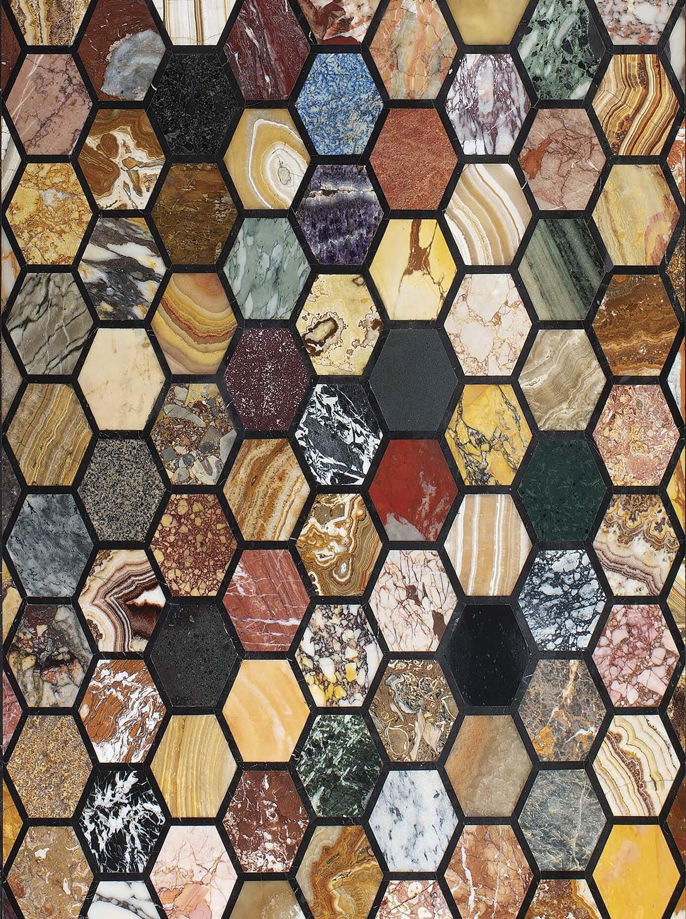 Inside Covers: Detail of the specimen marble top of the Boynton Hall Table, pp 64-67.