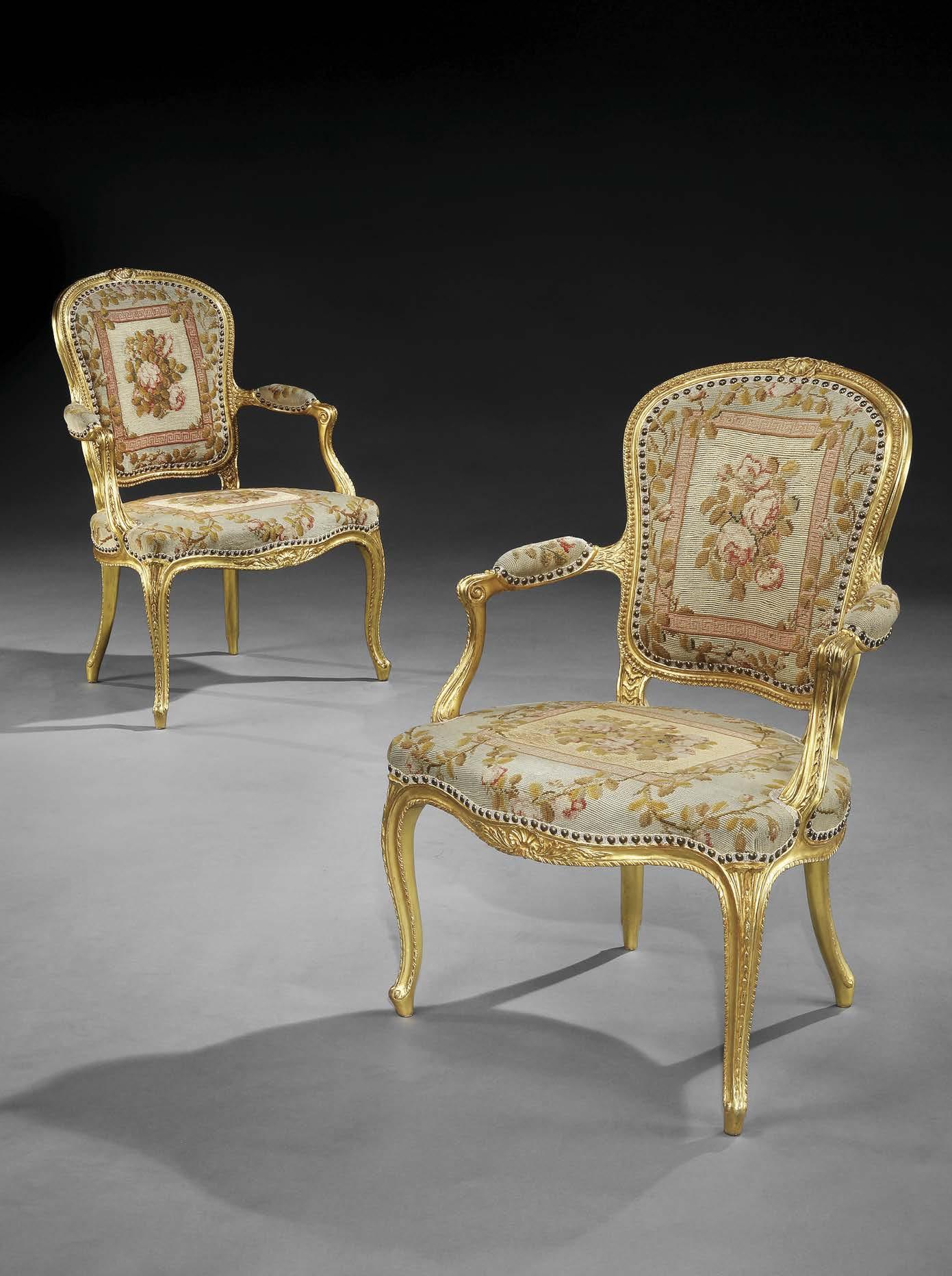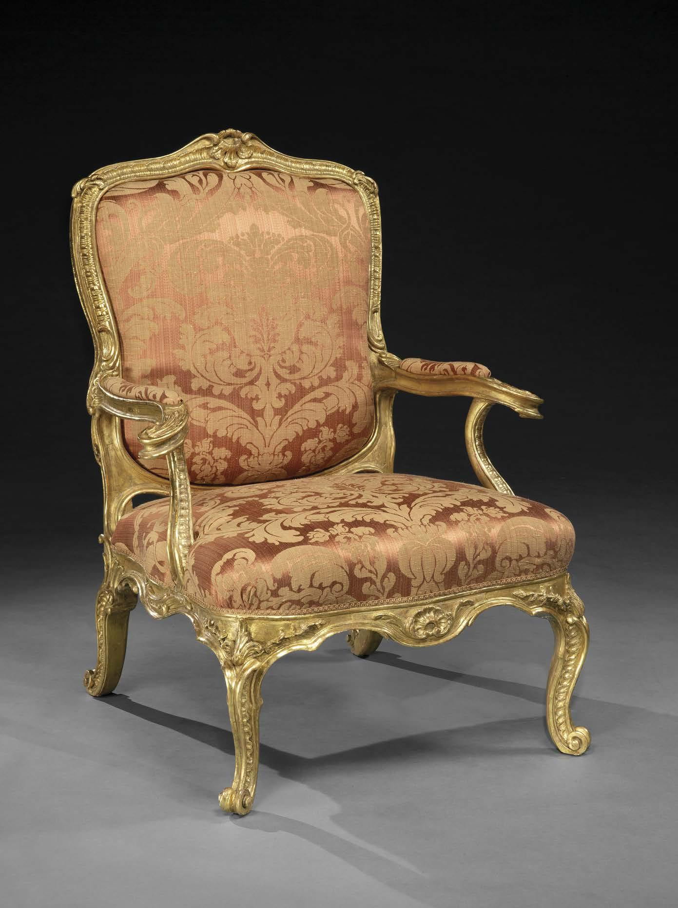 One of a pair of George III Giltwood Armchairs from Knowsley Hall, pp. 54-57.