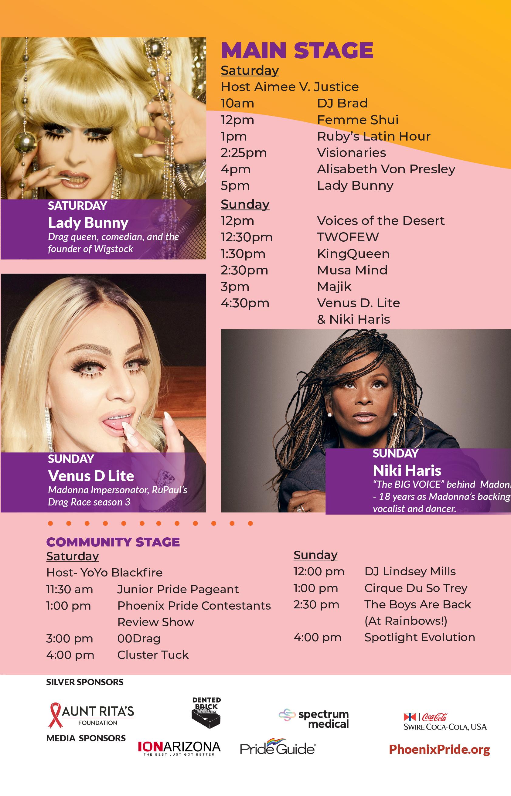 Celebrate LGBTQ diversity. Discover businesses, services, clubs, organizations, churches, plus top notch national and some really good local entertainment. Lady Bunny headlines at Heritage Square Park on Monroe & 7th St. in Phoenix. For more info visit PhoenixPride.org
