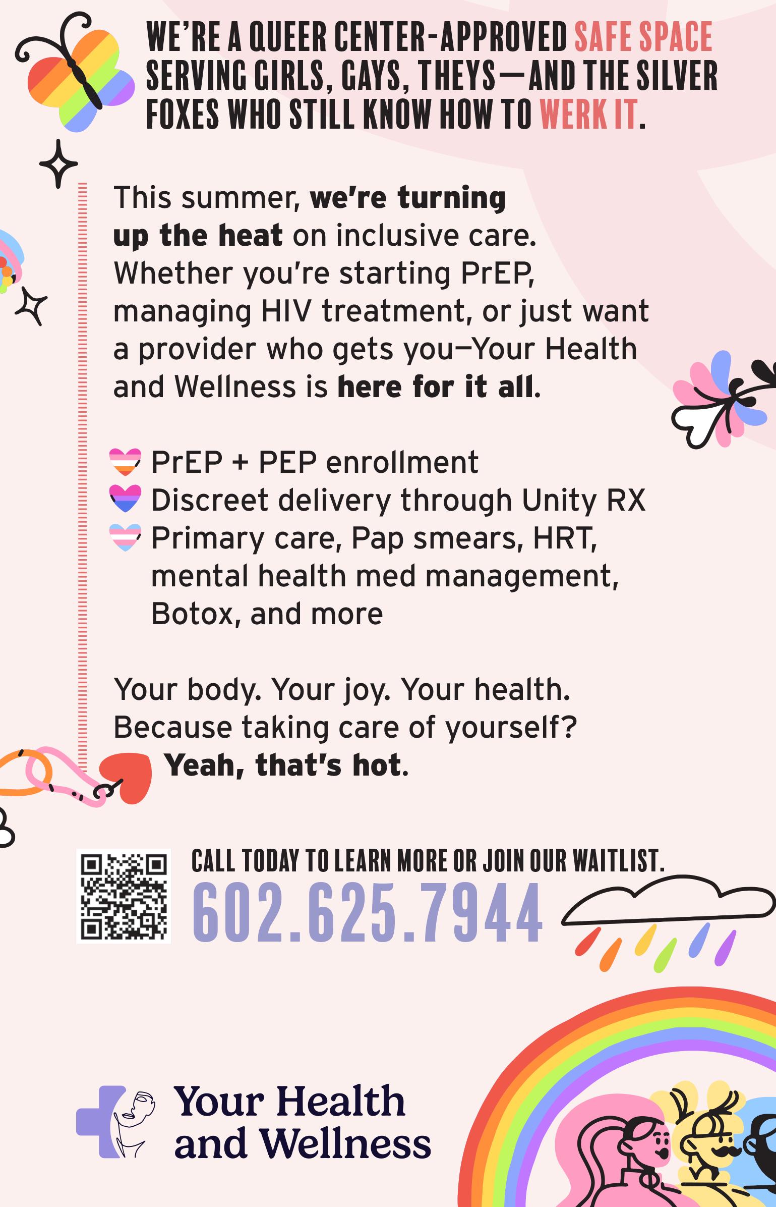 Time to warm up those vocal cords and find your harmony, hunty! The Phoenix Gay Men’s Chorus is holding auditions throughout August starting August 5th at the Parsons Center (1101 N Central Ave #200, Phoenix). Whether you’re a shower soprano or a seasoned stage star, there’s room for you in this iconic, glitter-filled chorus. Auditions are chill, just 10 minutes with their fab Artistic Director. If you make the cut, expect weekly Tuesday rehearsals and a mentor to help you werk the high notes. Sign up at phxgmc.org/ auditions and let your gay-ass voice shine!
