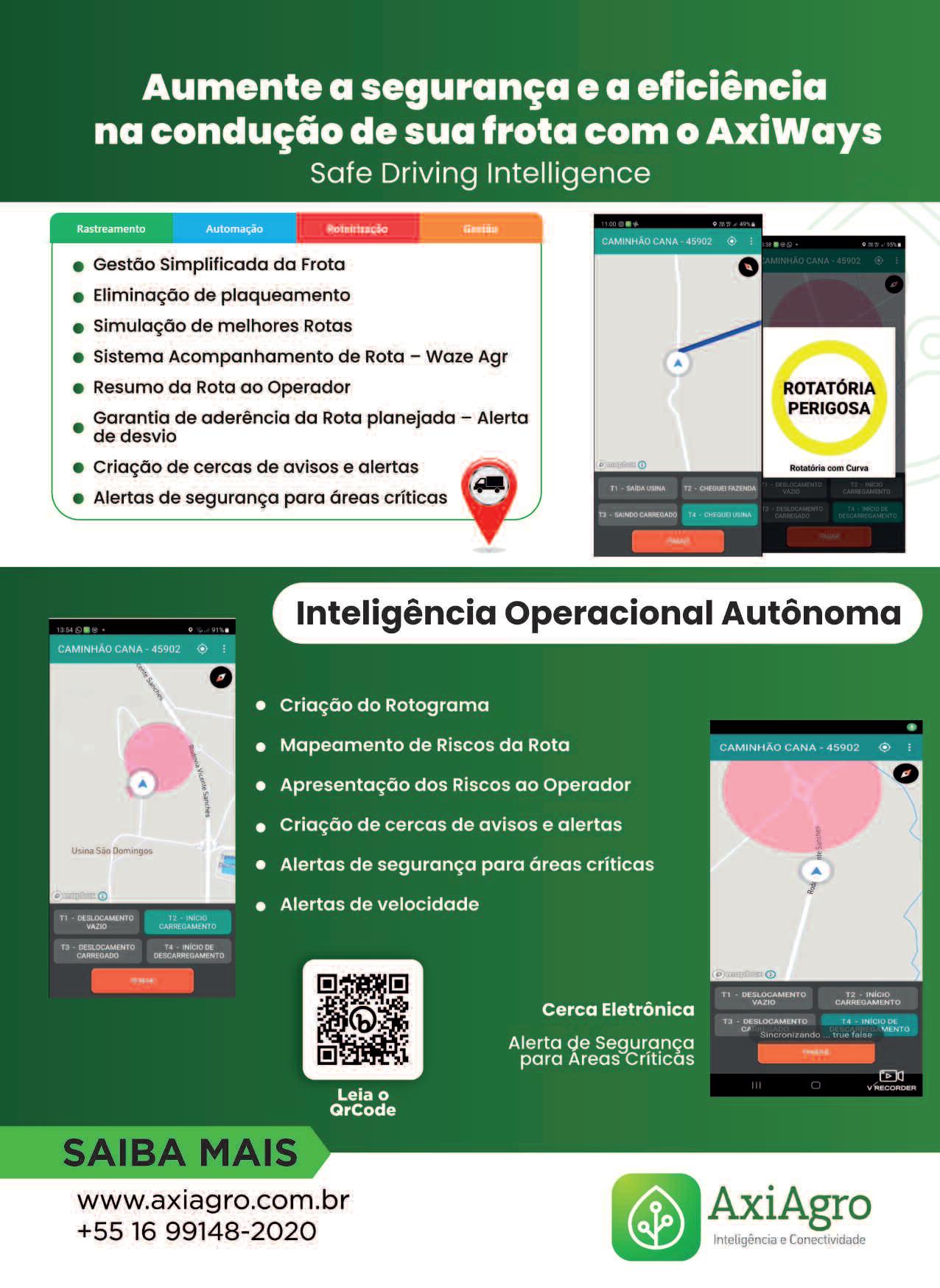 A edição de junho/julho mostra também que as companhias voltaram a investir para ampliar a sua produção, como case das Usinas Santa Mar ia, na Bahia e São Domingos, em São Paulo E que outras, estão conseguindo se reerguer, após passar por períodos de recuperação judicial, como a Usina Moreno, que liquidou o saldo das operações DIP Finance contratadas no encer ramento do processo de recuperação judicial, que ocor reu, antecipadamente, há cerca de 1 ano e meio Mostra também os investimentos em novas tecnolog ias, tais como o DT Faceum, uma fer ramenta de reconhecimento f acial produzida pela Dimastec, que está sendo implantada em todas as suas unidades A tecnolog ia reduz custos e traz mais ag ilidade no reg istro de ponto dos funcionár ios Além disso, o leitor encontra uma sér ie de matér ias sobre o prog resso do uso do biometano no Brasil, com testes em ônibus urbanos, através de uma iniciativa pioneira da Companhia Paranaense de Gás (Compagas), em parcer ia com a Prefeitura de Londr ina e a Scania E também mostra que os produtores r urais começaram a investir no combustível, sendo que o pr imeiro trator movido a biometano no Brasil foi vendido para uma f azenda em Mato Grosso do Sul, inaugurando um novo segmento de máquinas ag rícolas e marca o início de uma nova etapa na busca pela transição energética no país