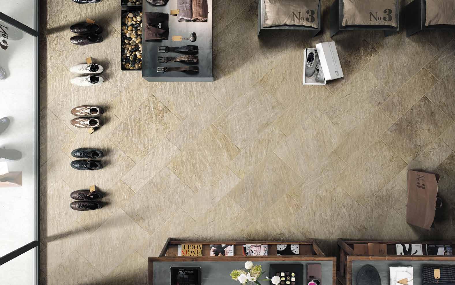 Quarziti está disponible también en la versión EVO_2/E™, en todos los colores et en los tamaños 600x1200, 450x900, 300x600,