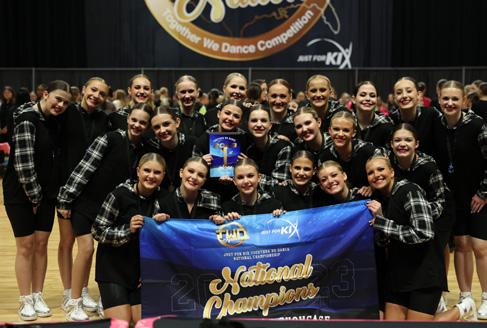 Just For Kix Dance Programs’ Senior Kix, Hip Hop and Pom dance teams who have been registered by their director.