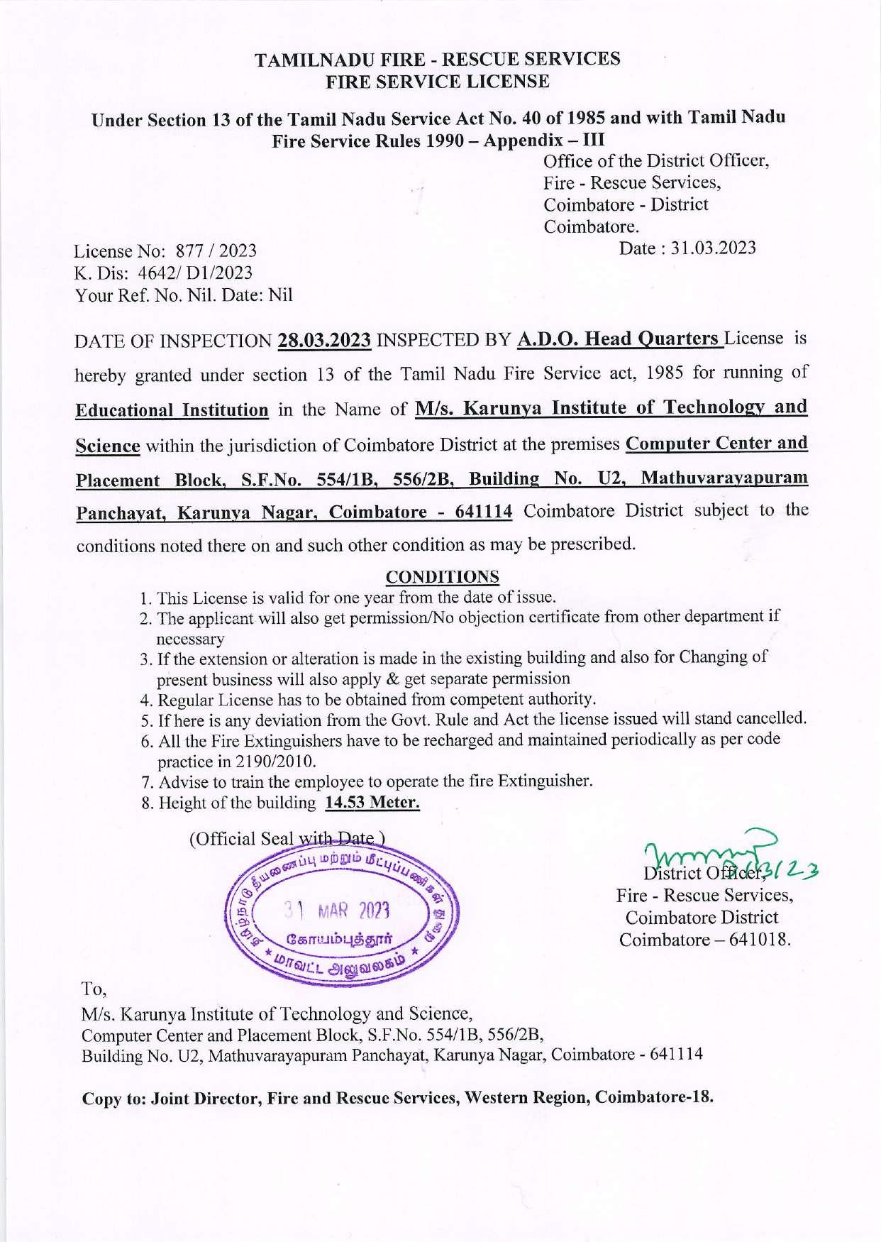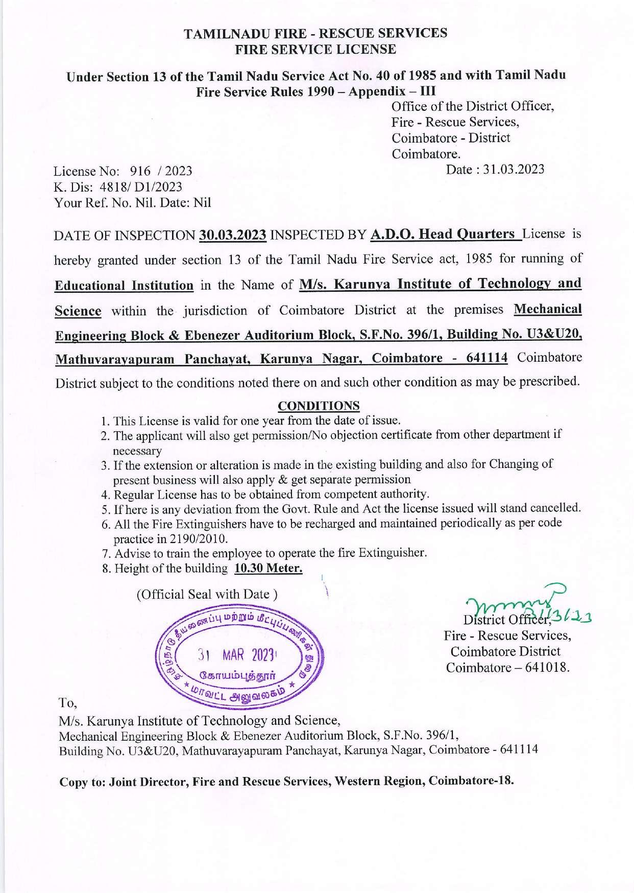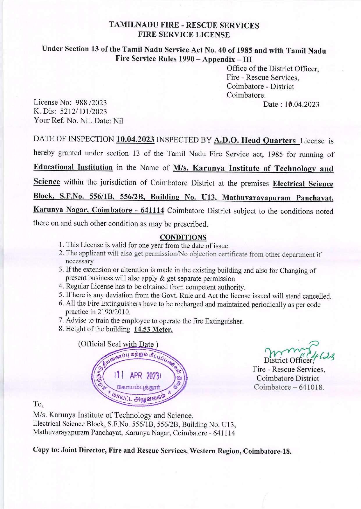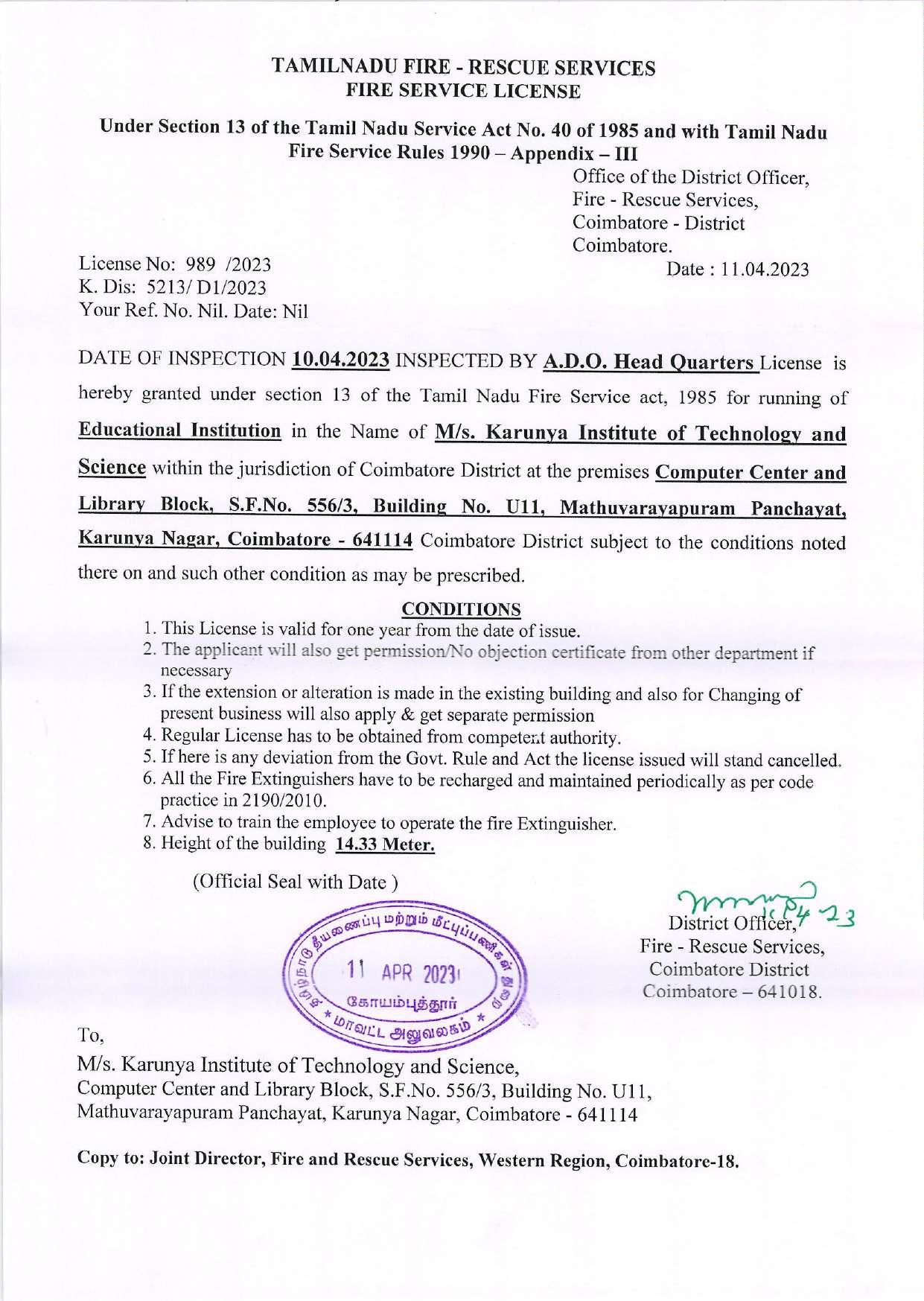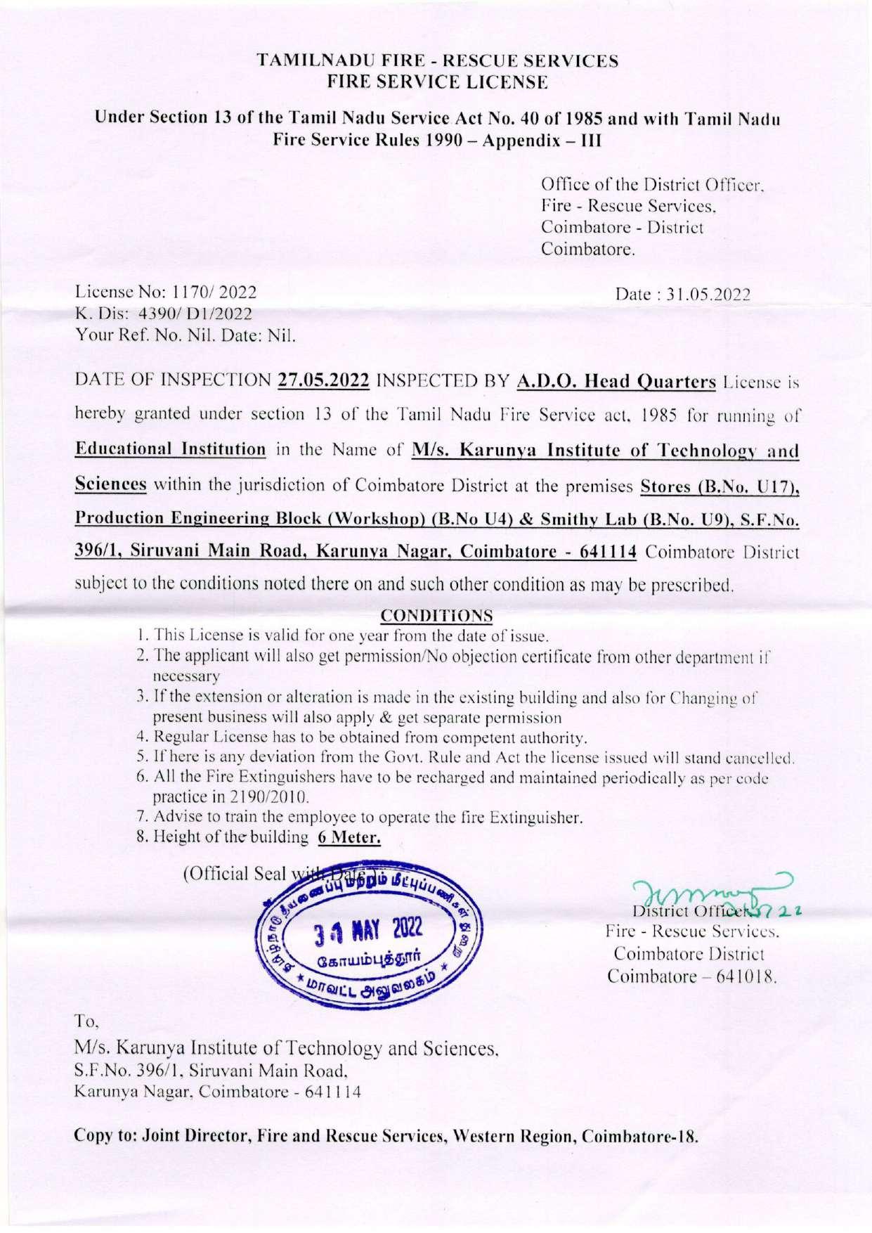 1.Name of the Insured: KARUNYA INSTITUTE OF TECHNOLOGY AND SCIENCES