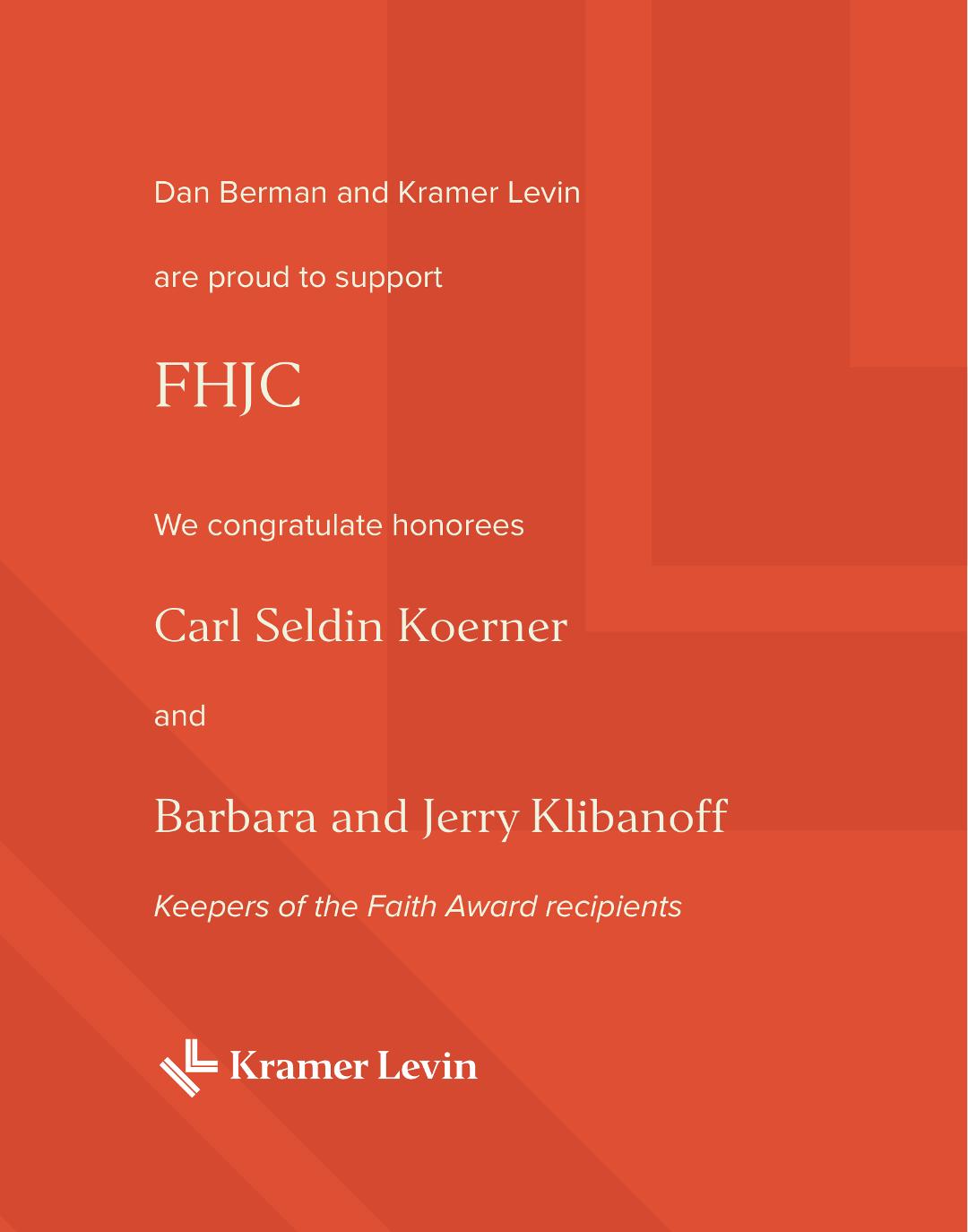 Carl,Jerry,Barbara,such amazinglydeservinghonorees! For all thework you'vedoneand continuetodofor FHJC,Kol hakavod! Mitchell and Lari Frank