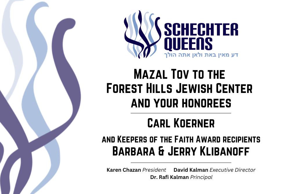 Tonight ismadeeven morespecial with thepresentation of our KeepersoftheFaithaward toBarbaraandJerryKlibanoff.Shul hastrulybeen afocal point of BarbaraandJerry?s livessince1969,when theyjoined,and until today.TheForest HillsJewish Center has been blessedtocount them amongour most exemplarymembersandtheyhave participatedin andled practicallyeveryconceivableprogram,committeeandevent over theyears,alwayswith goodgrace,refinedtasteandwarm smiles.Over morethan half a century,theyhaveeach lavishedall their manytalents,abundant loveand prodigious energiesfor thebetterment of our shul and thebenefit of our members.