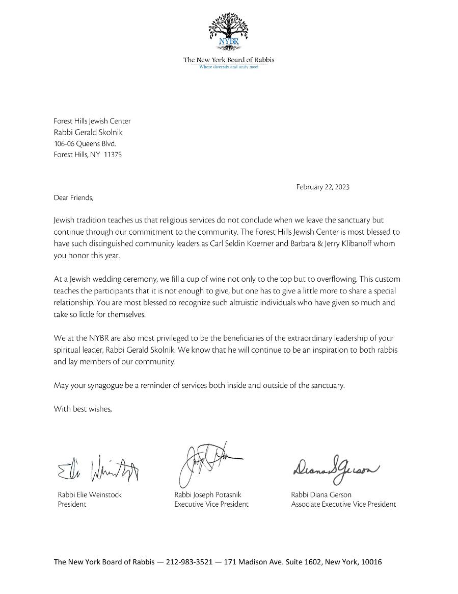Mayyou continuetowork on behalf of the Forest HillsJewish Center andtheJewish Communityfor manyyearstocome.