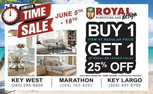 SARA’S ESTATE SALE at oceanfront Upper Keys Waterfront estate featuring curated collection of designer furniture, décor, tools & toys. Sale is Fri, May 30 and Sat, May 31 from 9a to 1p, both days at 374 Bahia Ave., Key Largo. Showstoppers: leather Robb & Stuckey living set & Baccarat centerpieces. Kitchen features brands like Mikasa, Reidel, Breville, Reed & Barton – dishes, glasses, small appliances & flatware. Art from FL artists & “highwayman” statement piece. Quality costume jewelry by Brighton, Christian Dior. Tools: Stihl Kombi w 3 attachments, grinder, air compressor, wheelbarrow, hitch cargo carrier & lots of outdoor furniture: swivel chairs, benches, bar cart, cantilever umbrella. Excellent French door fridge & full, upright freezer, Yeti cooler, & matching Trek cruisers. Turn off U.S.1 at Valero gas station onto Laguna Avenue, follow signs, park with consideration. More photos at estatesales.net.