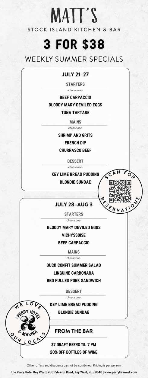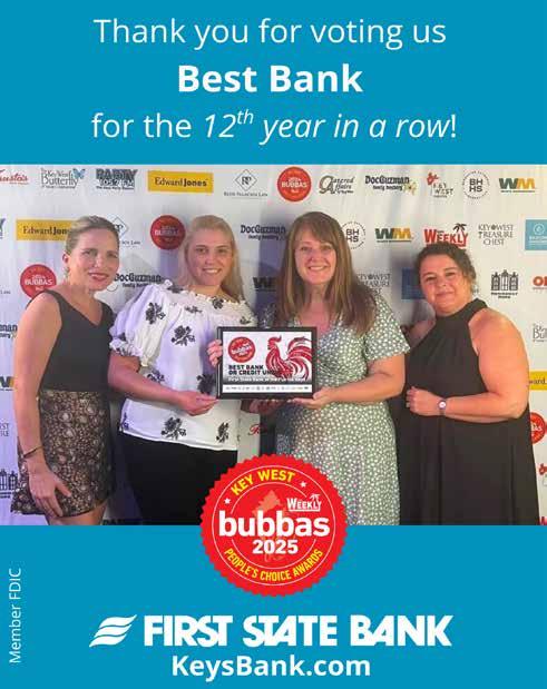 Se habla español THE KEY WEST WEEKLY (ISSN 1944-0812) IS PUBLISHED WEEKLY FOR $125 PER YEAR BY WEEKLY NEWSPAPERS, INC., 9709 OVERSEAS HIGHWAY, MARATHON FL 33050. APPLICATION TO MAIL AT PERIODICALS POSTAGE RATES IS PENDING AT FORT LAUDERDALE FL AND ADDITIONAL MAILING OFFICES.