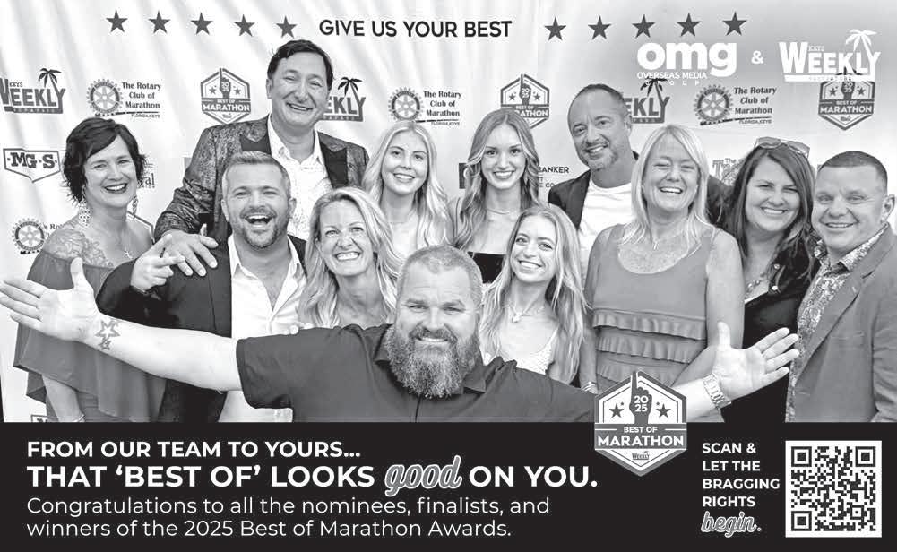 THE MARATHON WEEKLY (ISSN 1944-0812) IS PUBLISHED WEEKLY FOR $125 PER YEAR BY WEEKLY NEWSPAPERS, INC., 9709 OVERSEAS HIGHWAY, MARATHON FL 33050. APPLICATION TO MAIL AT PERIODICALS POSTAGE RATES IS PENDING AT FORT LAUDERDALE FL AND ADDITIONAL MAILING OFFICES.