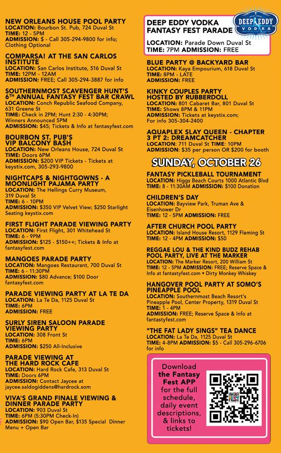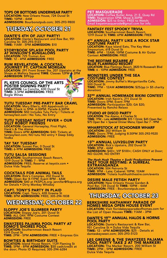 DOWNLOAD OUR FESTIVAL APP: ‘Key West Fantasy Fest 2025’ for the full schedule of events, GPS map, Hot Spots and more. THE BEST TOOL FOR FANTASY FEST! You can also visit FantasyFest.com for the full schedule of events. Follow our Facebook and Instagram pages where we will have most current information and updates.