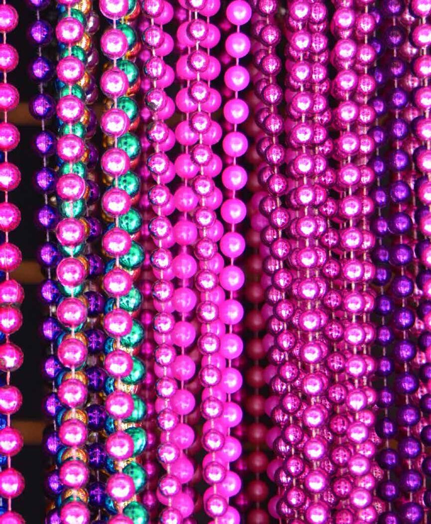Anyone who’s stood on the sidelines of Fantasy Fest or Mardi Gras knows about the infectious need to throw, or lunge for, beads. The evening starts, the floats roll by and you’re just excited to be there, absorbing it all. Then someone in a risqué costume tosses you some red beads. Around your neck they go. Now you’re feeling festive. You add a blue strand, a gold. Suddenly, you’re overcome with the desire to complete the whole rainbow. Once the full spectrum rings your neck, you realize you need some signature pieces – a medallion, a shot glass, a shamrock. Before you know it, you’re whooping and waving at each passing float. When you finally drag yourself away at the end of the night, your chest is heavy, anchored with an impressive collection of shiny plastic bits.