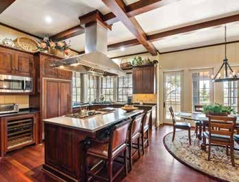 granite countertops, and a sprawling island make it a chef’s dream. A pub with a barrel-vaulted ceiling and media room with automatic blackout shades add to the home’s entertainment appeal.