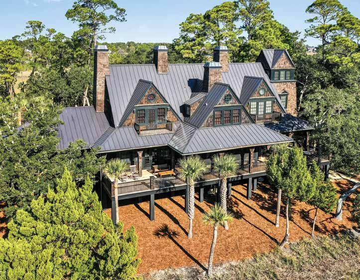 Four oceanview primary suites boast private balconies, while additional guest suites, a bunk room, fitness nook, and multiple wet bars provide ample space for family and guests. The toplevel suite features a 37-foot rooftop deck with some of the most stunning ocean vistas on Kiawah.