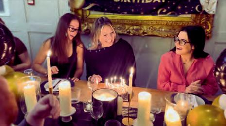 racing against the clock as a team. Afterward, enjoy a delicious 3-course meal and sip cocktails at your very own late-night bar. Spend the evening relaxing in the hot tub and sauna or ramp it up with a dance party. It’s all yours for the night!