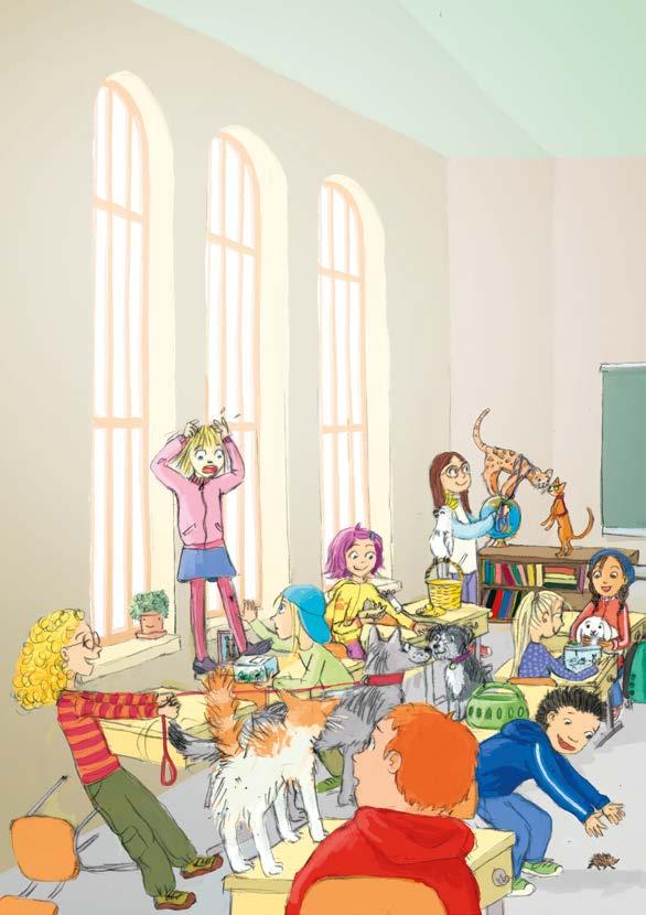 Luokassa oli melkoinen kaaos, kun kaikilla oli lemmikki mukanaan. Paitsi Ronilla, jolla ei ole lemmikkiä ja Saralla, jonka hevonen ei olisi mahtunut luokkaan. Eleonooran koira riehui niin, että tuoleja kaatui. Sara kirkui, kun Valtin lemmikkitorakka pääsi karkuun ja alkoi kiivetä hänen jalkaansa pitkin. Paulan ja Severin kissat eivät sietäneet toisiaan, mutta Mir oli innoissaan uusista kavereista, ja Ti-bot vaihteli eläinmuodosta toiseen ja jutteli lemmikeille.