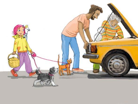 – Pakko ottaa taksi, Nizo huokaisi ja avasi kyytisovelluksen puhelimeltaan. Sitten hän huomasi Kati-en. – Moikka! Eikös sinun pitäisi olla koulussa eikä ulkoiluttamassa lemmikkejä?