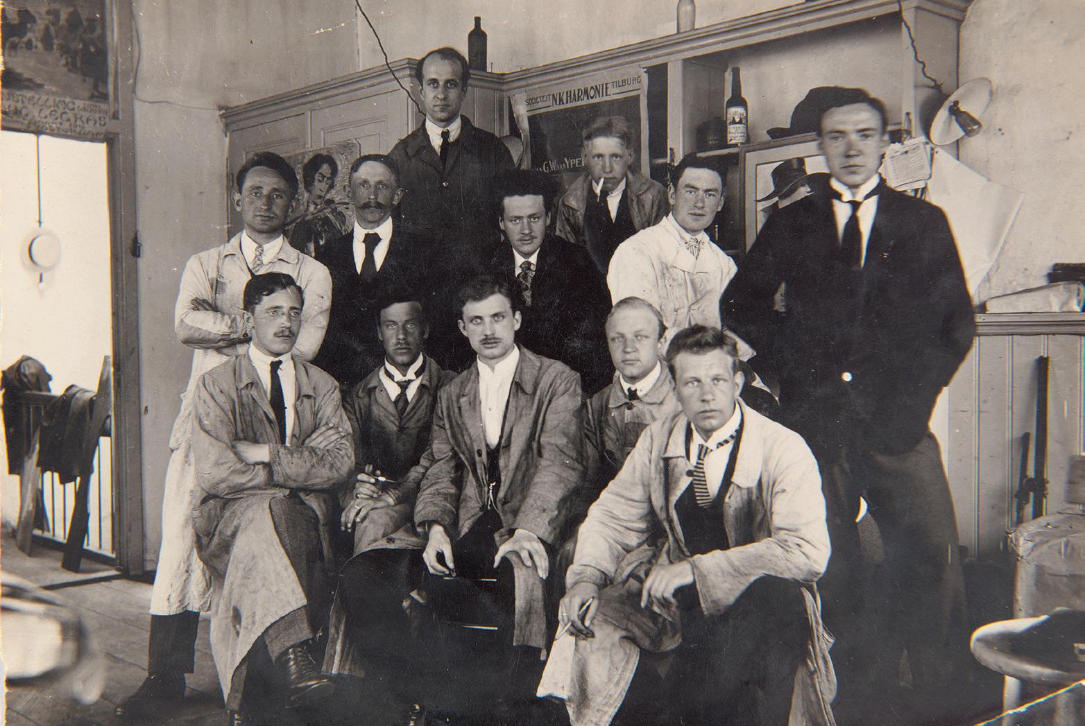 In Amsterdam richten begin februari 1934 tien schilders en beeldhouwers de groep De Tien op. Hiervan maken deel uit: Willy Boers, Wim Bosma, Hans van Dam, Ger Gerrits, Roelf Jongman, Herman Kruyder, Toon van den Muysenberg, Jelle Troelstra en de beeldhouwers Huib van Lith en Willem Rädecker. Het bericht in de landelijke kranten, waarin melding van de oprichting wordt gemaakt, kondigt tevens een aantal exposities van de groep aan. Tentoonstellingen zullen worden gehouden te Eindhoven, Tilburg, Maastricht en Den Bosch.36 De Tien is ongetwijfeld een gelegenheidsvereniging, opgericht omdat het makkelijker is als groep expositieruimte te vinden dan als individueel kunstenaar. De Tien exposeert met een rondreizende tentoonstelling onder andere in Kunsthandel Unique, Heuvelstraat 19 te Tilburg, in het Maastrichts Museum en in de Openbare Leeszaal te Den Bosch. Gerrits stelt onder andere de schilderijen Stilleven – ‘strak, hard, gestileerd, tempera-achtig, maar toch wel als vlakke muurvulling, van sterke werking’ 37 – en Naarden tentoon.38 ‘Ger Gerrits heeft een aantal werken, die wel een overzicht zouden geven van zijn gestadige groei, doch hem niet in die mate vertegenwoordigen, zoals wij hem kennen uit zijn Kaaswinkel, een doek van een zeer persoonlijke opvatting.’ 39