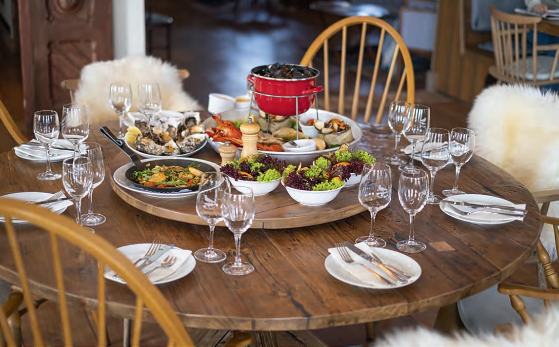 Austern mit Kaviar zu kombinieren, zwei außergewöhnliche Luxusprodukte zusammenzuführen, ist dabei schon ein Klassiker. Der salzige, et was jodige Geschmack und die feinen Texturen der beiden Delikatessen harmonieren einfach vorzüglich, zum Beispiel zu genießen im kulinarischen Olymp der Insel, im Zwei-Sterne-Restaurant Söl’ring Hof in Rantum, wo Herdkünstler und Gastgeber Jan-Philipp Berner mit seinem Team über die Weihnachtstage und den Jahreswechsel wieder zur Höchstform aufläuft.