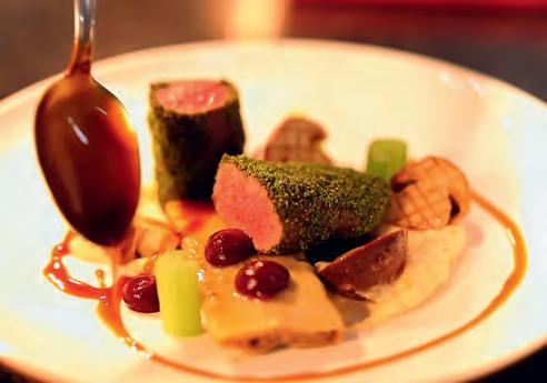 freundliche Serviceteam begeistert mit raffinierten Kreationen aus Europa und Asien. Der Blick über den Tellerrand ist den weitgereisten Weltenbummlern Susanne Kreuzberg-Suchy und Oliver Suchy wichtig, aber auch die saisonale Tageskarte bietet köstliche Überraschungen. Verarbeitet werden nur erstklassige, frische Produkte. Der Tag im alten Zollhaus beginnt mit einem fantastischen Genießerfrühstück und klingt mit einem vorzüglichen Dinner sowie edlen Tropfen stimmungsvoll aus. Werfen wir einen Blick auf die aktuelle Speisekarte und gehen mit der Zunge auf Reisen: Den Auftakt zu einem Menü macht Beef Salat vom Wagyu mit Brokkoli, Papaya, Buchenpilzen und Erdnuss. Köstlich das Hummerschaumsüppchen mit Kokos, Hummer und Zitronengras oder das Safranrisotto mit Zucchini und Tomate. Als Hauptgang lockt das Steinbuttfilet, begleitet von Erbse, Möhre und Beurre blanc. Butterzart zergeht das Husumer Rinderfilet auf der Zunge, serviert mit zweierlei Blumenkohl, Trüffel, Tomate und Kartoffel. Zum süßen Abschluss lockt der verboten leckere Zollhaus Cheesecake. ■