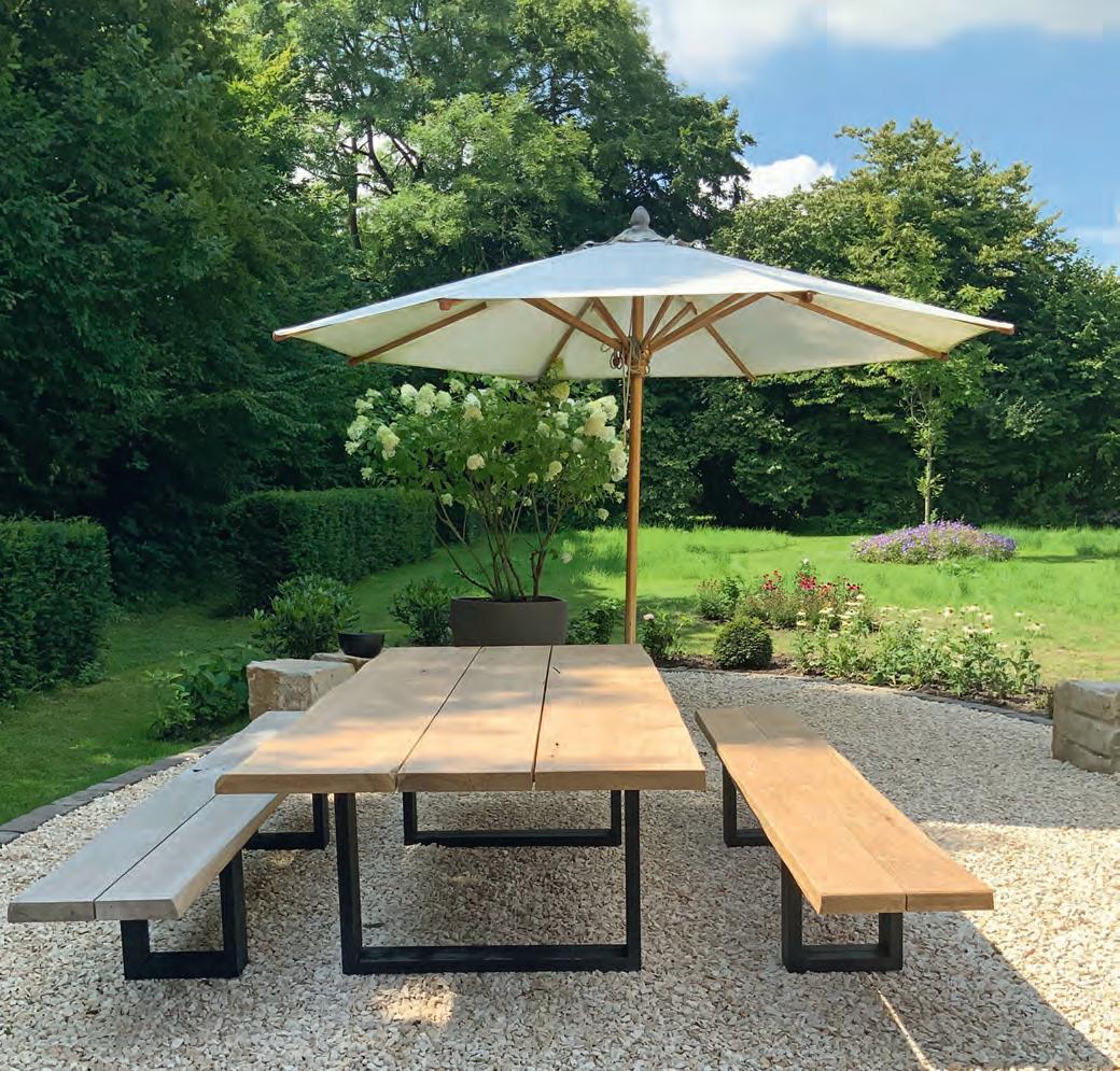 Eine große Auswahl der schönen Massivholztische ist auf dem Areal von „Garten & Wohnen“ zu bewundern – Highlights, die alle Blicke auf sich ziehen! ■