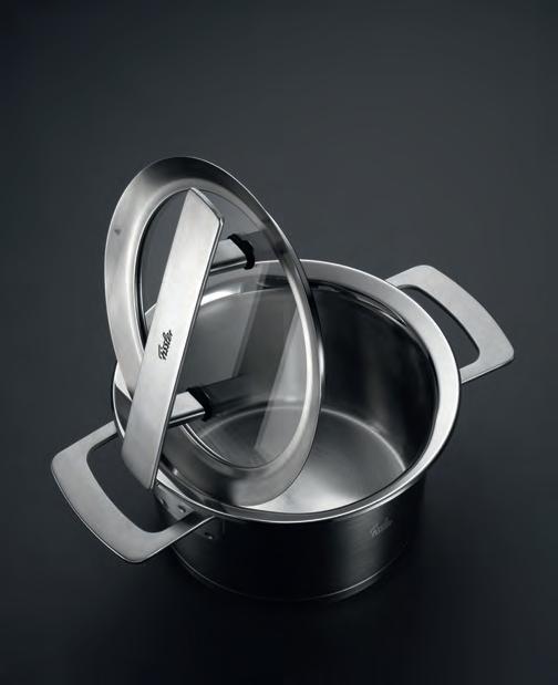 waren es, Kochtöpfe zu kreieren, die sowohl in ihrer Proportion als auch in ihrer Funktion Balance, Vollkommenheit und Schönheit in sich tragen. Nicht nur das Kochen, auch die Kochtöpfe werden auf diese Weise zur Kunst. Um dem Anspruch an Vollendung und Harmonie Rechnung zu tragen, haben sich unsere Fissler-Handwerksmeister und -Kochexperten mit den Produktdesignern von Phoenix Design, ausgezeichnet mit zahlreichen DesignPreisen, zusammengetan und die Phi Collection entwickelt“, erläutert André Koch, Global Brand & Communication Manager bei Fissler. Das Ergebnis ist ein unverwechselbares, innovatives und multifunktionales Kochgeschirr made in Germany. Es sind der ausgeprägte Funktionsumfang und das zeitgemäße Design, die dieses Produkt einzigartig machen. In Kombination mit dem hochwertigen Material bilden Design und Proportionen die perfekte Balance für einen effizienten Kochprozess und ein stimmig abgerundetes Gesamtbild auf dem gedeckten Tisch. Dies erfüllt den Anspruch an ein hochwertiges Kochgeschirr und mündet in einem ganzheitlichen Kocherlebnis. Das langlebige und nachhaltige Kochgeschirr besteht aus widerstandsfähigem, zu 100 Prozent recycelbarem Edelstahl 18/10. Die breiten, extravaganten Griffflächen verbessern die Ergonomie und harmonieren perfekt mit dem Gesamtensemble aus satiniertem Edelstahl und Glas. Die Griffflächen können noch mehr: Sie schützen vor Hitze und unterstützen so die Handhabung während des Kochvor-