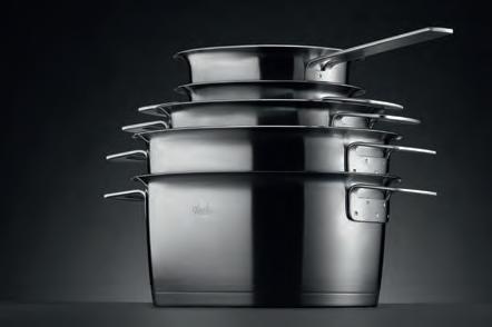 gangs. Perfekt in die Gestaltung integriert sind wichtige Funktionen wie Downdraft, Ausgießer, Einhängen des Deckels oder Stapelbarkeit, die bei aller Funktionalität sehr fein und reduziert wirken.