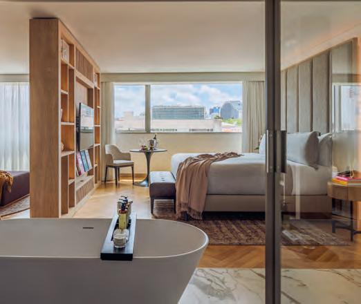 Mit 213 Zimmern und Suiten bietet das ME Lisbon ein vielschichtiges Erlebnis aus Komfort, Charakter und eindrucksvollen Ausblicken – von den Baumwipfeln des Eduardo-VII-Parks bis hin zum Castelo de São Jorge und dem Tejo. Das Highlight bildet die Ultimate ME+ Suite: ein 107 Quadratmeter großes Refugium mit exklusiven ME+ Services und freiem Blick über die Dächer Lissabons. Als kultureller Leuchtturm richtet sich das ME Lisbon gleichermaßen an Einheimische wie an internationale Gäste. Ein künstlerischer und gesellschaftlicher Veranstaltungskalender feiert Kunst, Musik, Mode und Innovation – in Kooperation mit Formaten wie ARCO Lisboa und der Lisbon Design Week. So erwachen die Räume des Hauses zum Leben – von der sechs Meter hohen Lobby bis hin zur pulsierenden Rooftop-Terrasse. Für alle, die inmitten des lebendigen Stadtlebens Ruhe suchen, bietet das KORPO Spa einen sinnlichen Rückzugsort – mit beheiztem Innenpool, türkischem Bad, Trockensauna sowie Treatments der Marken Thalion und Scens. Ein rund um die Uhr geöffnetes Technogym-Studio richtet sich an Gäste, die auch unterwegs nicht auf ihr Training verzichten möchten.