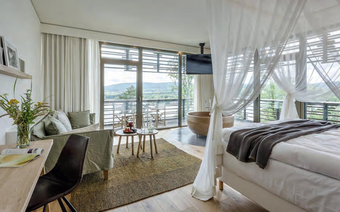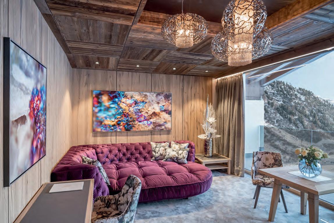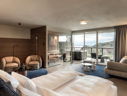 Das Haus empfängt mit stilvoller Ästhetik, lichtdurchfluteter Architektur und echter Herzlichkeit. Klare Linien, warme Materialien, großzügige Räume – ein Refugium zwischen Natur und Design. Zimmer und Suiten, durchdacht bis ins Detail mit Blick auf die majestätischen Gipfel. Die Penthouse-Designersuiten mit großzügigen Glasfronten und 35 Quadratmeter großer Dachterrasse samt Panoramabadewanne und Kuschelliegen setzten neue Maßstäbe für Wohnluxus.