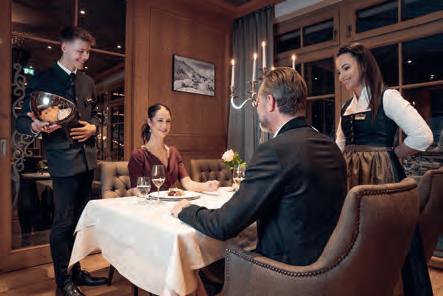 Wellness mit Weitblick. In der 180-Grad-Panoramalage scheint selbst das Wasser zur Ruhe zu kommen. Im Sonnen-Infinity-Pool (20 x 9 m, 32 °C) gleiten Körper und Gedanken sanft dahin, während im Sole-Relax-Pool (8 x 5 m, 36 °C) das Wasser selbst zu einer weichen Umarmung wird. Der 26 Meter lange Panoramapool – durch eine Schleuse verbunden – lädt innen wie außen zum Treibenlassen ein (33 °C/ 34 °C). Wer neue Energie sucht, findet sie im InfinityWhirlpool (8 x 4 m, 36 °C) oder im belebenden Tauchbecken mit kristallklarem Quellwasser (8 x 3 m, 14 °C). In der Panoramasauna wird selbst das Schwitzen zum stillen Erlebnis – mit Blick über die Gipfel. Bio-Zirbenkräutersauna, Soledampfbad, Kristallbad und großzügige Ruheräume mit Wasserbetten und Kuschelnischen schenken Raum zum Ankommen. Küchenchef Michael und das AT Küchenteam komponieren mit Fingerspitzengefühl alpine Klassiker, neu interpretiert, getragen von feinen Aromen und hochwertigen Zutaten. Das abendliche Gourmetmenü ist eine Reise durch Genusswelten. Dazu ein Service mit Gespür für den Moment. Warm. Unaufdringlich. Persönlich. Alpen Tesitin. Über den Dingen. Mitten im Sein.