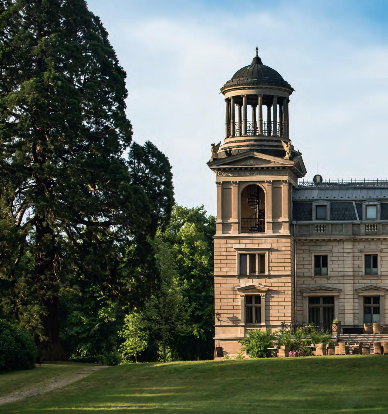 Zum Grundstück des exklusiven Hotels gehören ein Privatpark mit Wäldchen sowie ein kleiner See.