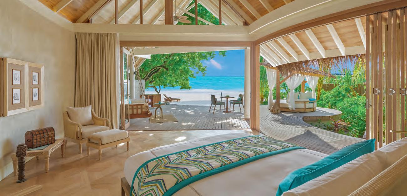 Two Bedroom Ocean View Pavillon (92 qm) from Euro 747; Two Bedroom Beachfront Pavillon (100 qm) from Euro 868; Four Bedroom Beach Pavillon (194 qm) from Euro 1578