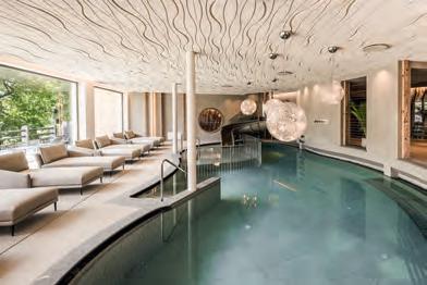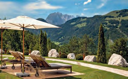 Hotel Chalet Mirabell. Eingebettet in saftige Wiesen und verträumte Wälder präsentiert sich das hochkarätige Hideaway im Meraner Ort Hafling als „place to be“ für all jene, die sich nach Ruhe, Erholung und Genuss sehnen. Mit dem Fünf-Sterne-Refugium führen Christine und Michael Reiterer sicherlich eines der schönsten Domizile des Landes. Im Luxus-Relax & Spa (6 000 qm) für Erwachsene mit verschiedenen Saunen, Outdoor Sunset Pool, Panorama Silence Rooms und vielem mehr findet jeder Highlights für Wohlfühl- und Entspannungsmomente. Familien können im Family Spa nach Herzenslaune die große Wasserwelt mit In- und Outdoorpool, Panoramahallenbad sowie Kids- und Babypool erkunden, die neue, finnische Sauna genießen oder in den gemütlichen Schwebeliegen zur Ruhe kommen. Herausragend ist die Gastronomie, die im Rahmen der Dreiviertel-Gourmetpension von morgens bis abends zum Schlemmen auf höchstem Niveau einlädt. Neben dem Panoramablick erwartet Gäste in den exklusiven Zimmern und Suiten großzügiger Komfort und ein stimmiger Stilmix aus traditionell-alpenländischer Gemütlichkeit und urbanem Chic. Wo der Alltag keinen Zutritt hat, führen Ruhe und Natur Regie – ein Rückzugsort, an dem man mit allen Sinnen entspannen kann. Umweltschutz und Nachhaltigkeit sind der Familie ein Anliegen. Davon zeugen u a. eine Photovoltaikanlage sowie der Naturbadeteich, dessen Wasser aus eigenen Quellen biologisch aufbereitet wird.