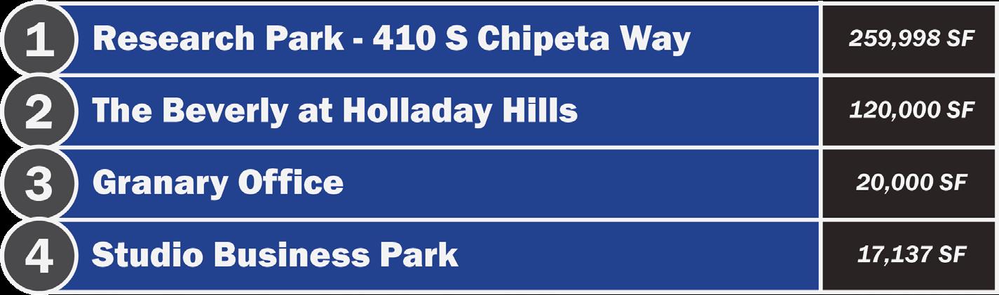 Utah County saw 138,462 square feet of negative absorption this quarter, bringing yearto-date absorption to negative 60,638 square feet thanks to 143,725 square feet of negative absorption in Class A properties in the North quadrant alone. However, the North quadrant also saw the most positive absorption, with Traverse Ridge Center I adding 38,930 square feet and Canopy V adding 17,667 square feet to the total.