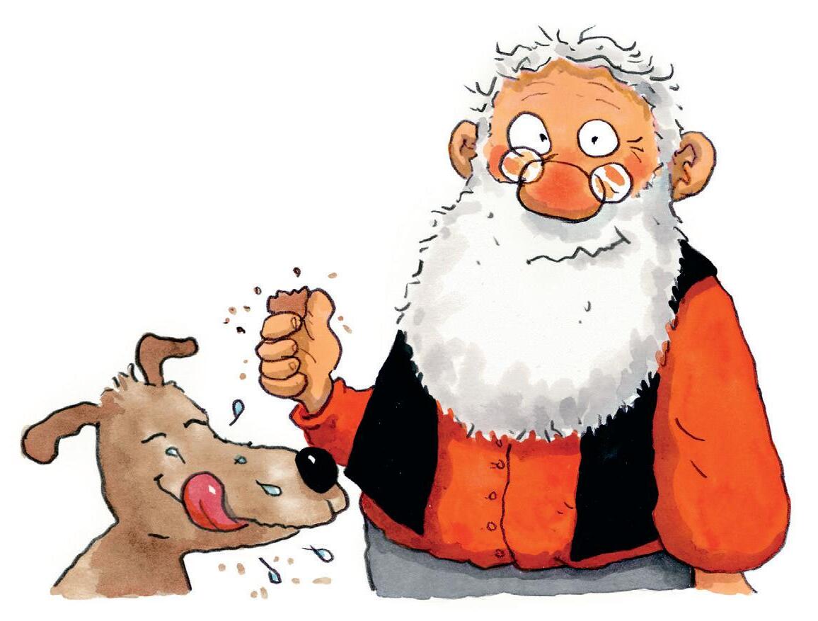O Kalėdų Senelis gavo dovanų tokį puikų čiulpinuką, kad nenorėjo iškart jo suvalgyti. Tačiau Reksas norėjo.