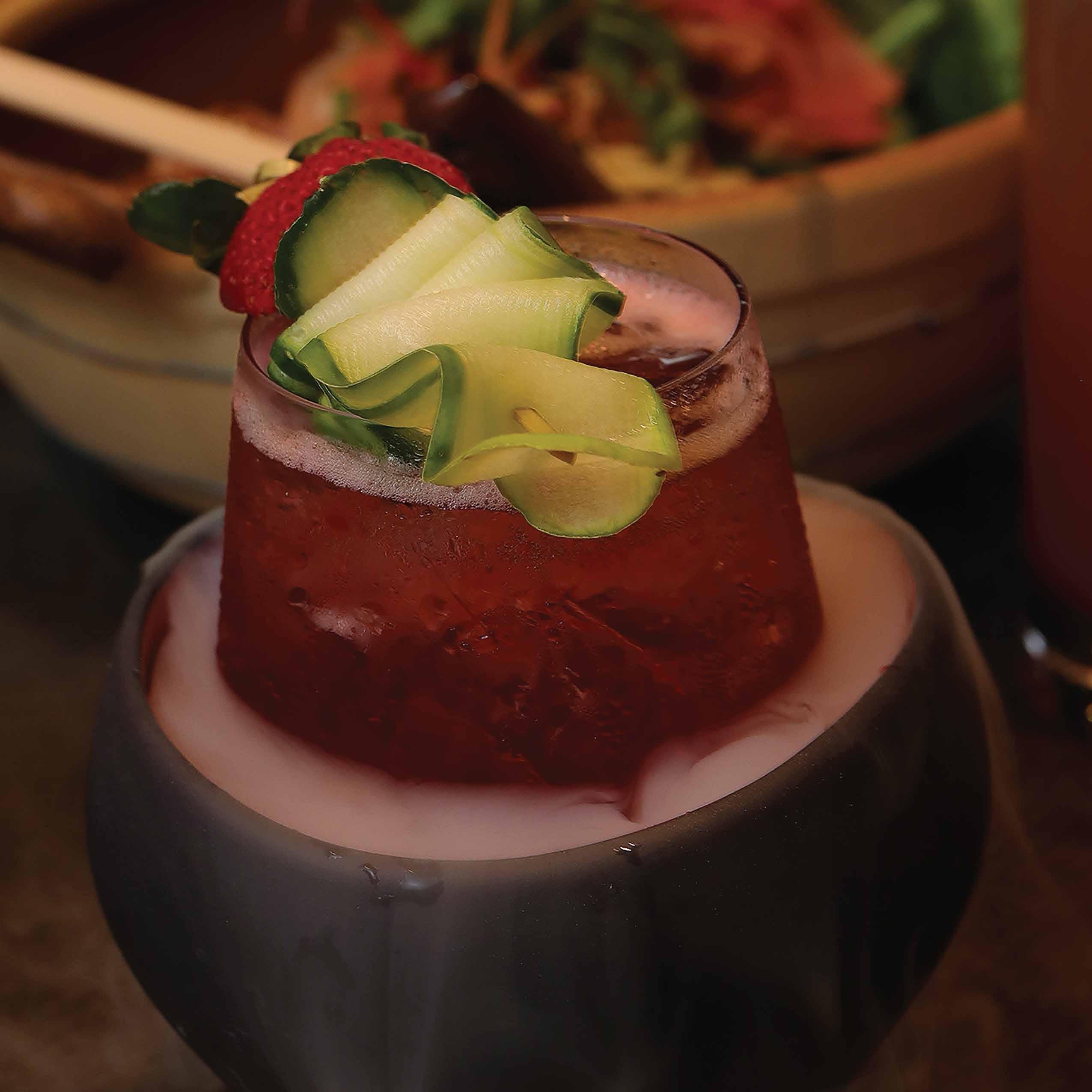 Gin, tonic water, sliced cucumber, fresh lime.