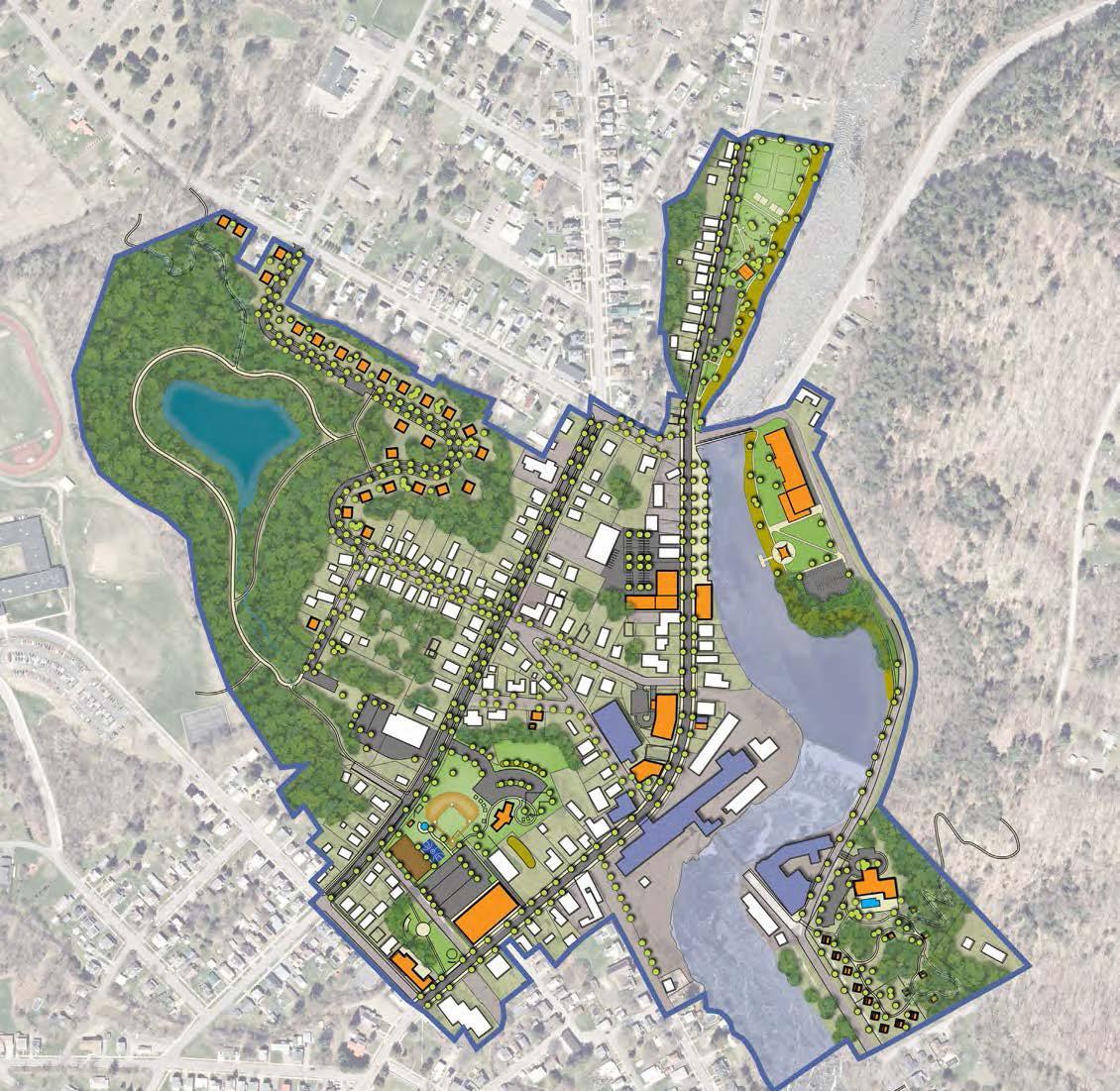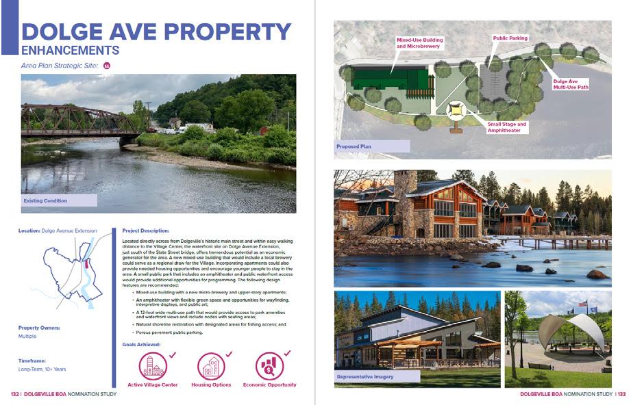 Community engagement played a critical role in shaping the projects, which are design to promote a vibrant and active village center with good economic opportunities, provide diverse housing options, and increase community resilience Proposed improvements include new creekside parks and public open spaces in floodprone arees, rehabilitation of existing vacant historic structures, hospitality and lodging options (including adventure lodging), active manufacturing, and mixed use buildings that could incorporate a range of uses including childcare services, co-working space, and microbreweries.