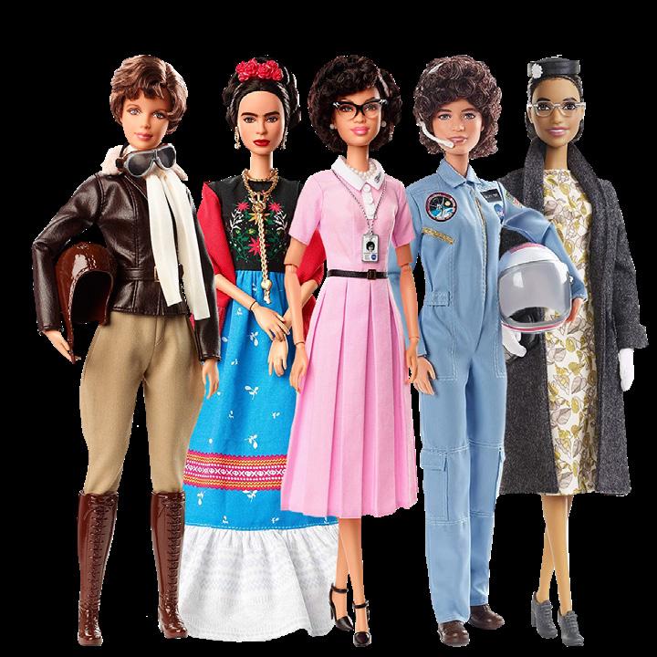 Mattel released the Inspiring Women Series including Amelia Earhart, Frida Kahlo, Rosa Parks, Katherine Johnson, and Sally Ride.