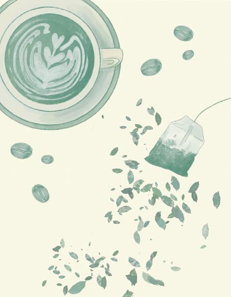 IT’S TIME for society to grow up and admit tea is bet ter than coffee. Tea and coffee may have certain com ponents in common, but the ability to create the perfect taste and aroma to your exact liking is what puts tea on top. Let’s begin by taking a look at the widely varied world of tea tastes. Even the most reluctant tea drinkers would be amazed by tea’s range of favors, which range from the subtlest white tea to the boldest black tea—the options are limitless. In contrast, coffee can occasionally hide its actual favor under heavy roasts. Tea inspires you to slow down and enjoy every moment, whereas coffee hurries you through each cup.