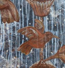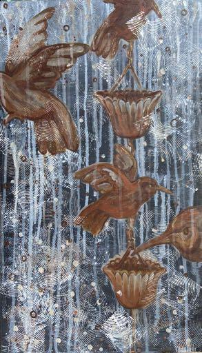 “I was inspired by my mom’s rain chain, I wanted to capture the way the metallic wings grab my attention on rainy days.”