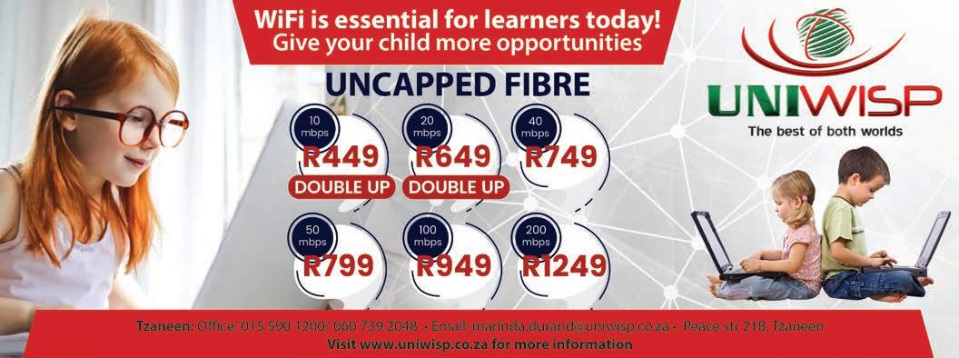 Fibre to the home and business. 015 590 1200 marinda.durand@uniwisp.co.za