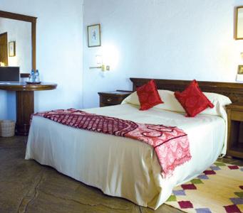 The lodge has 33 tastefully furnished twin, double and triple rooms. Each of the rooms has a fireplace and a private bath/shower. The balcony contains an individual seating area with a view of the lush