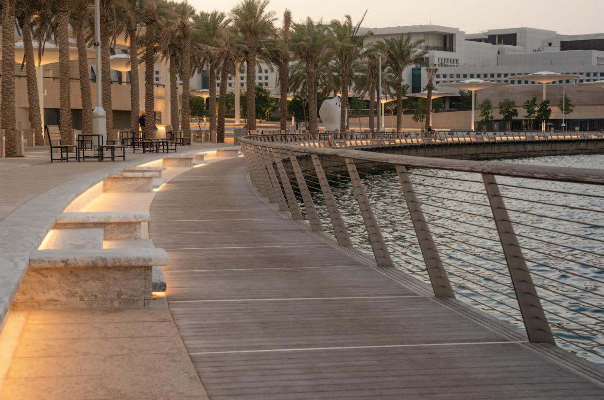 Stretching beneath the striking Lusail Plaza Towers and offering a breathtaking view of Qetaifan Island, a coastal walkway crafted from Kebony premium sustainable wood decking is setting a new standard for sustainable urban design in the Middle East. This pedestrianfriendly path marries innovative international technologies with eco-friendly materials, offering a climate-resilient solution to meet the region’s growing demand for sustainable infrastructure.