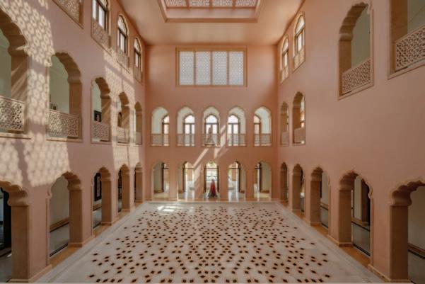 Enter the Narsighar house on page 36, which embodies the traditional planning principles of the regional architecture prevalent for centuries in Rajasthan. The property is situated in the arid desert region of Nokha, where most of the houses and palaces built in this region have courtyards for cooling down and thick stone walls to mitigate the excessive heat.