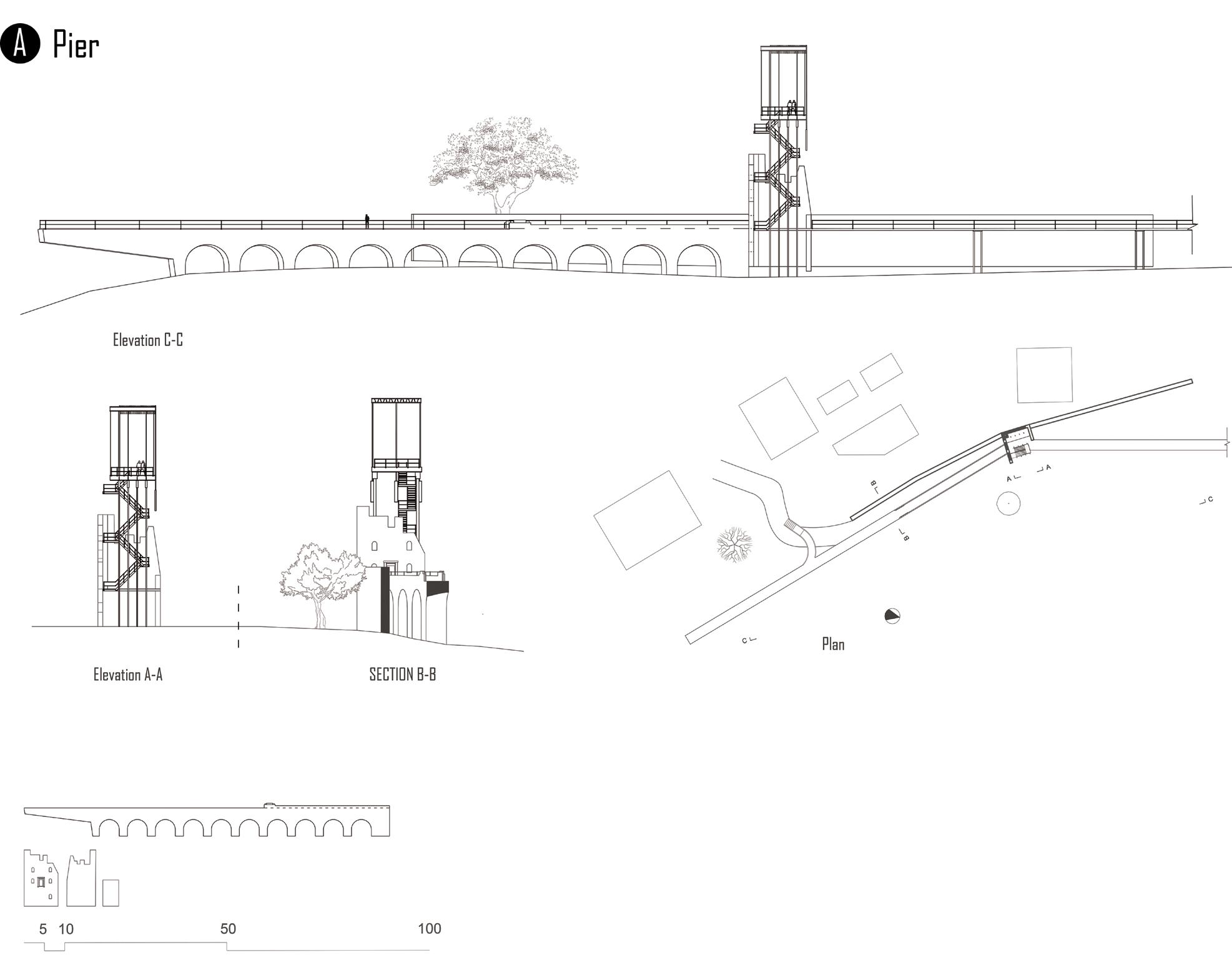 The idea revolves around a continuous, enchanting path designed to captivate tourists at every turn through Tibneh. Starting from the visitor center, the path meanders along the ancient city wall, leading to the first gatehouse and into the meticulously renovated pier. From there, it extends to a wooden pier that juts out over the hilltop, revealing a breathtaking panorama of surrounding hills adorned with olive groves.