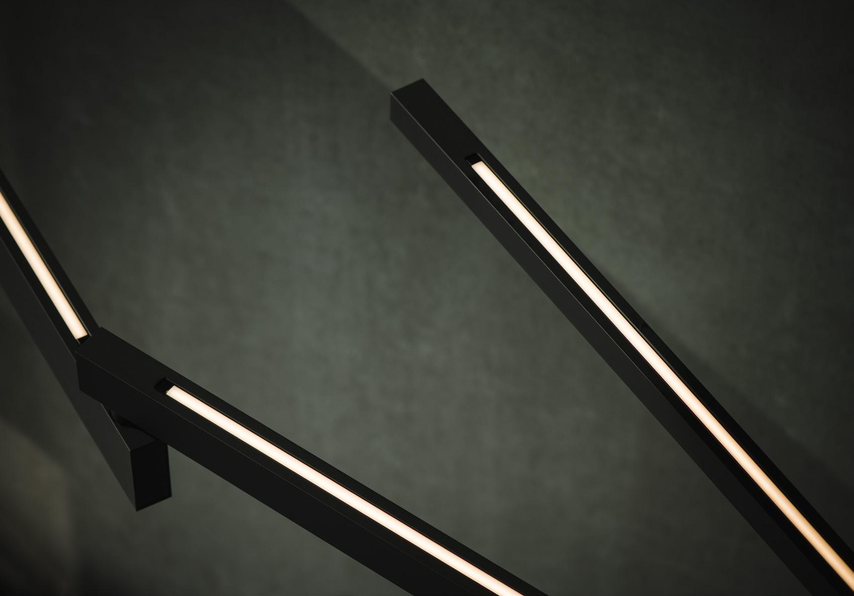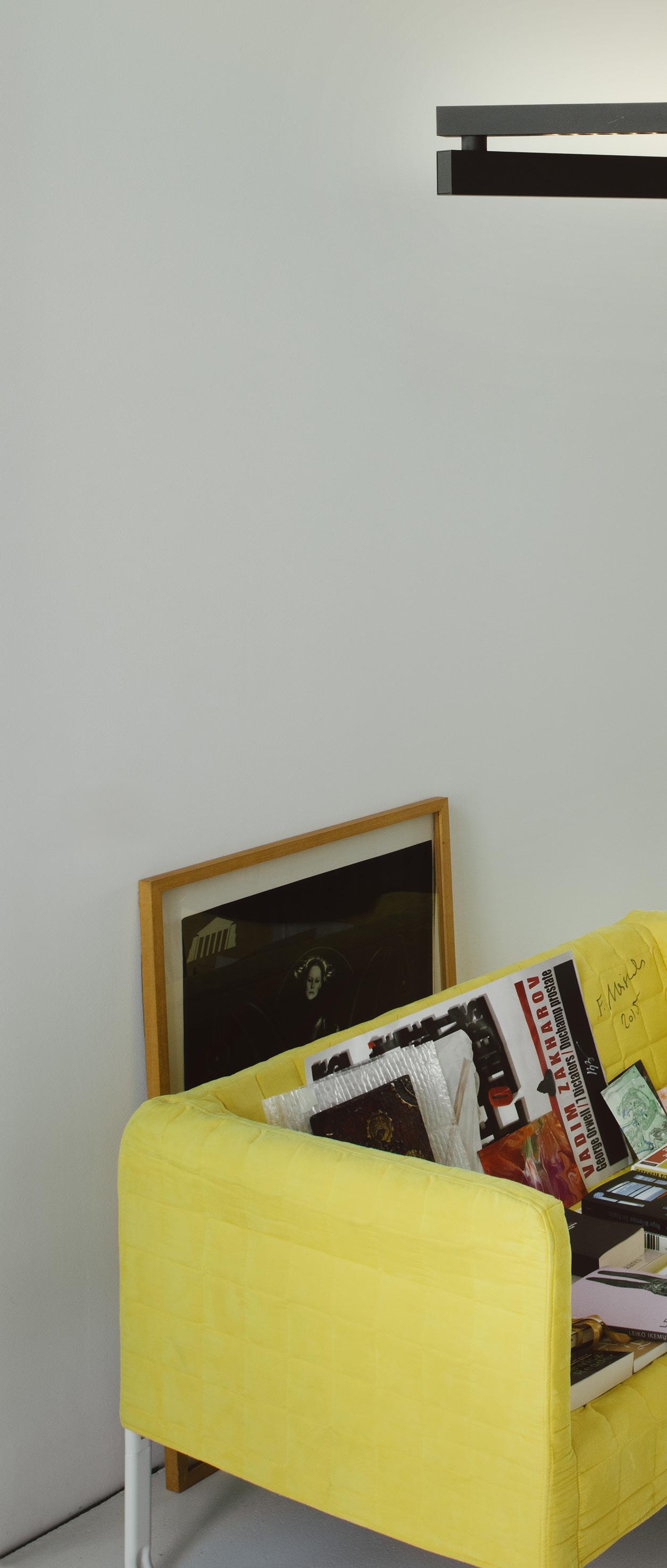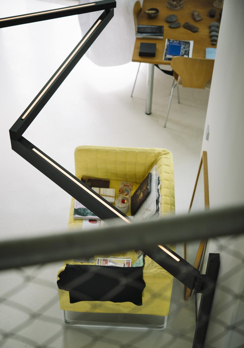KONSTANTIN GRCIC The project started with a number of design proposals that I presented speculatively to Flos. We took the initiative, proposed several projects –one of them a wall-mounted lamp with a very long reach. The initial idea was to make it in a very light and strong material like carbon fibre, to have a good structure supporting one long arm. Then the project really took many turns. And in the end, we got to Black Flag, which still has a long reach, but it also has a mechanism. It’s not one long arm covering a radius. Black Flag has three pivoting arms, and that results in many more possible adjustments than the original idea, with just one swinging arm. Thanks to Flos, we made that initial idea into a functioning product made of aluminium extrusions, incorporating a lot of technology. That’s the advantage we gained from using these profiles. Suddenly, we had storage for technology.