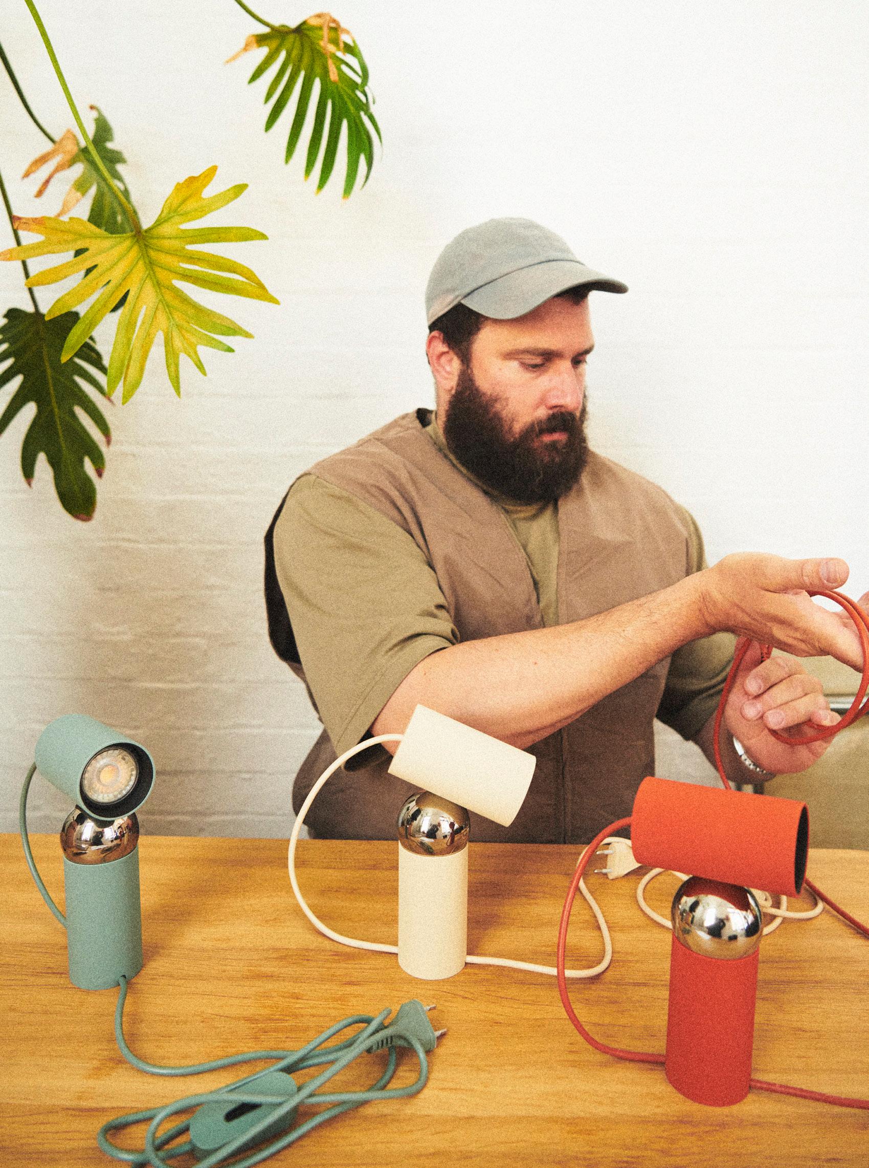 Malouin himself has been testing the table lamp –whose head connects to the body via a sleek magnetic sphere, allowing it to be used in a plethora of different configurations– at his studio and with his friends across East London. We followed him in his urban wandering as he packed Bilboquet in his backpack and cycled to see the lamp in action at the homes of his creative friends. With Malouin, we talked about flexibility in domestic design, creative communities and how the experimental approach he has been fostering throughout his career has led to the design of Bilboquet.