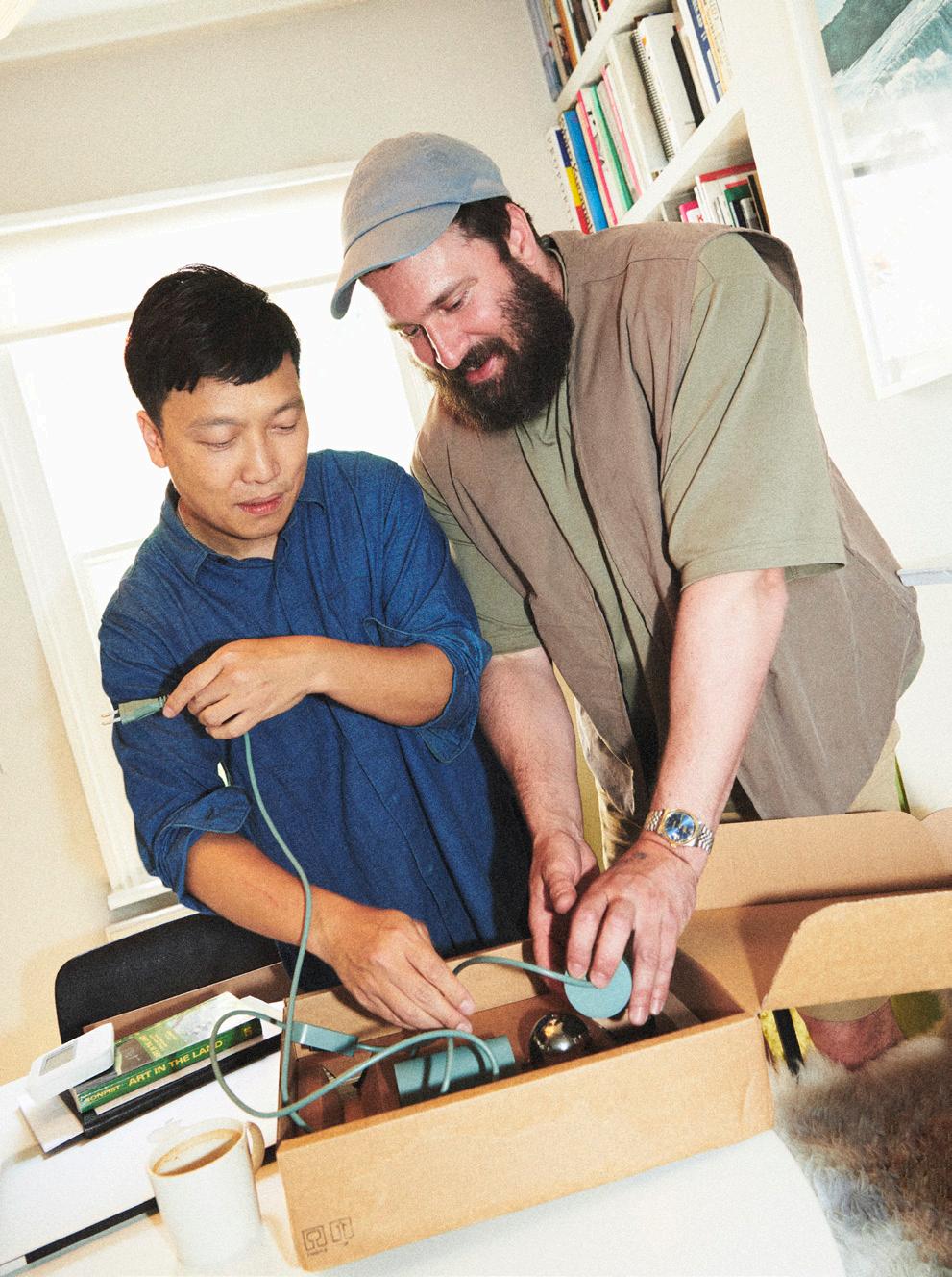 People across these pages are also in flux: we follow Malouin across east London, as he rides his bike from his studio with Bilboquet in his backpack, to test it at his friends’ homes, exploring its potential. Inspired by Achille Castiglioni’s approach to functionality, Bilboquet serves as a functional illumination tool and ambient light in the same gesture to ‘achieve a lighting design that makes the most sense for whatever you're doing’.